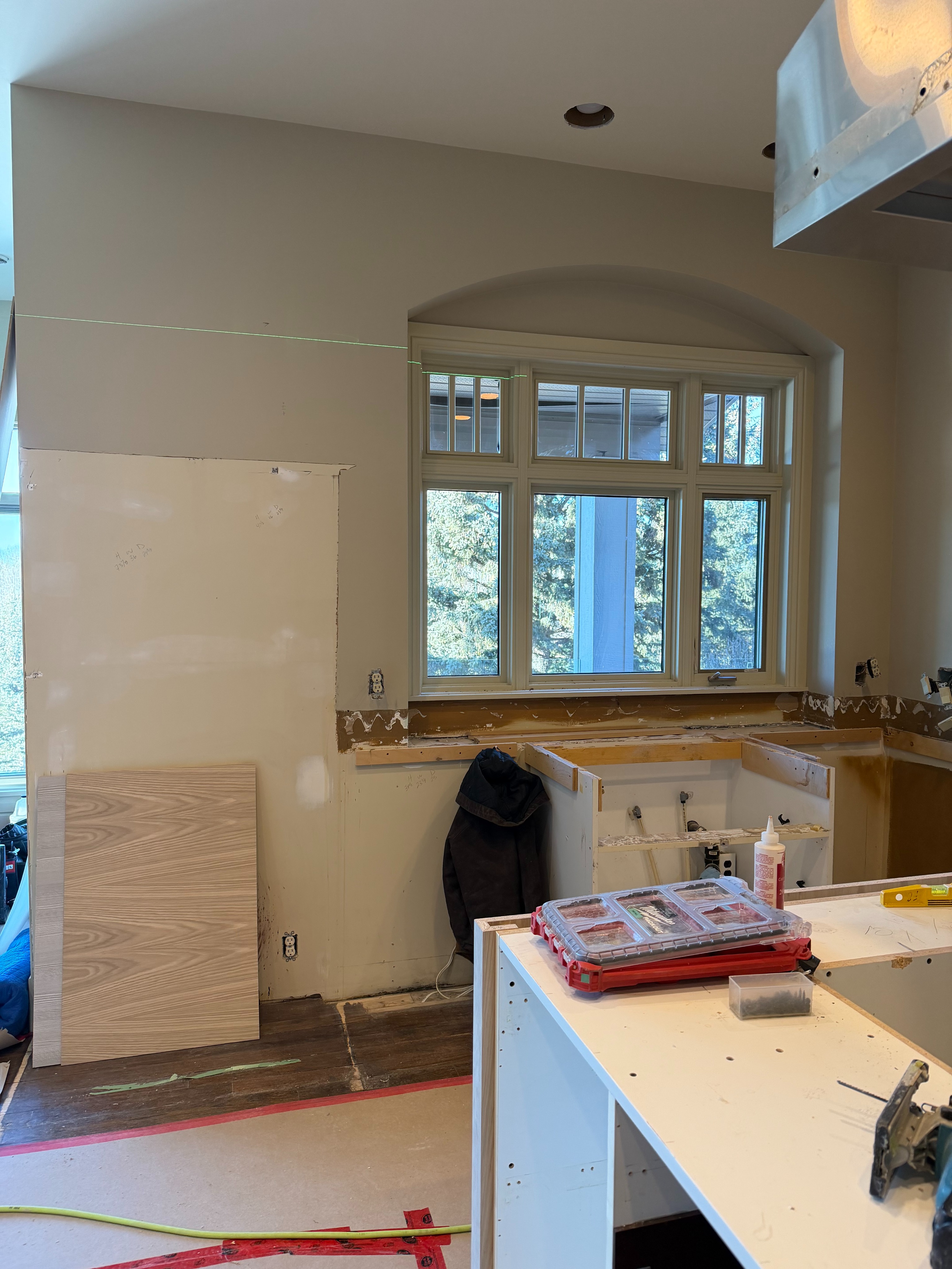 place a 6 foot fridge left side of the wall with a white shaker panel