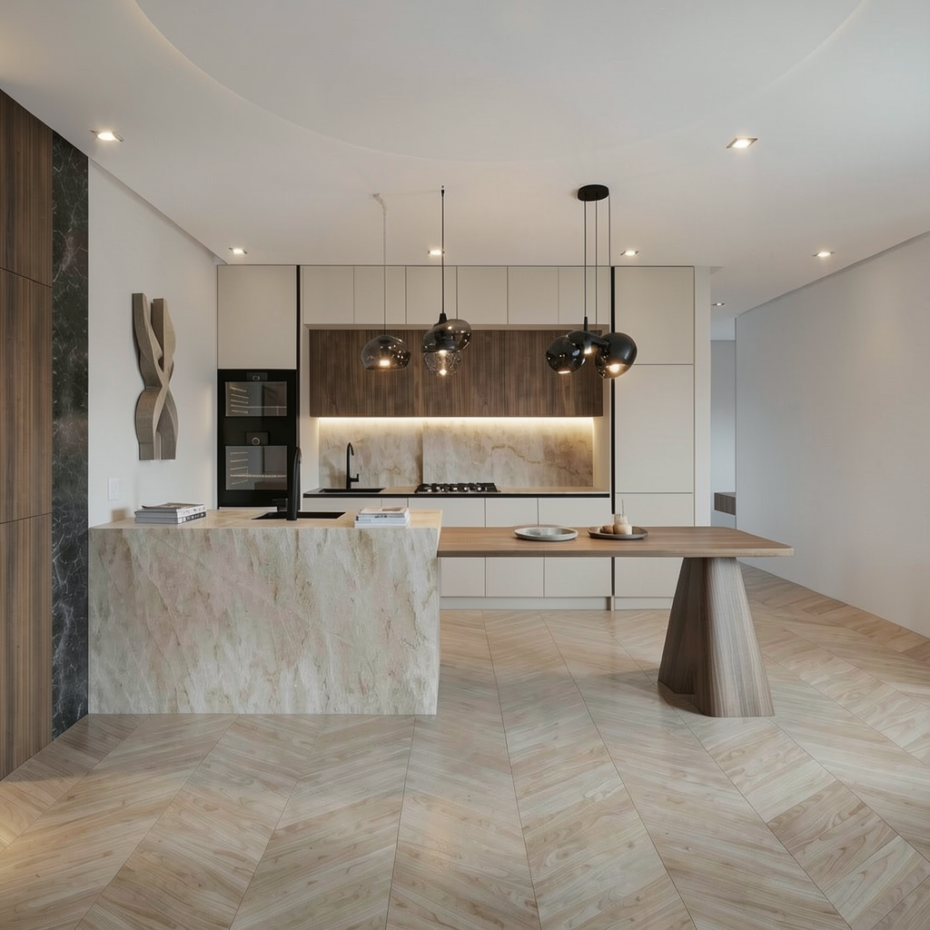 add four chairs at the dinning table that is extended from the island