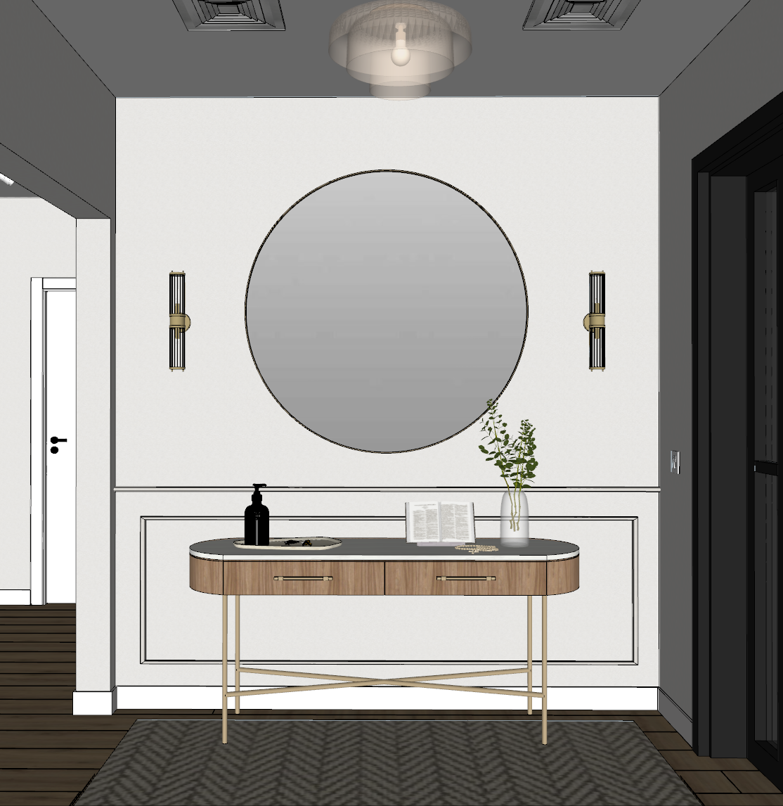 bring life to this image to look like a real magazine picture without altering my design give the materials more realism without making big changes all the walls are creamy white flooring is oak