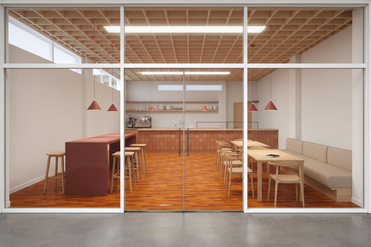 crea una imagen fotorealista a partir de este sketchup realza las texturas e iluminacion a ade iluminacion perimetral en el foseado del techo que no sea intensa haz que la estancia se vea natural aclara la imagen se ve oscura a ade estores en las ventanas cuidado la tv es negra