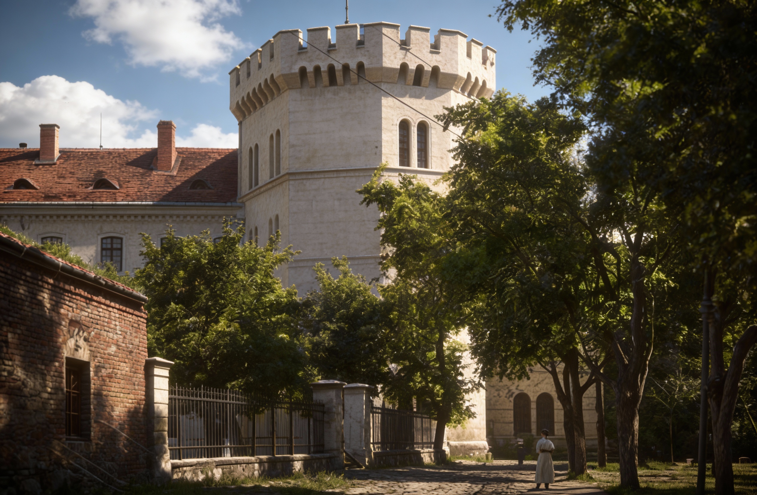 make it a vivid sunny picture with a forest in the background with lots of trees on the foreground als some grass and flowers