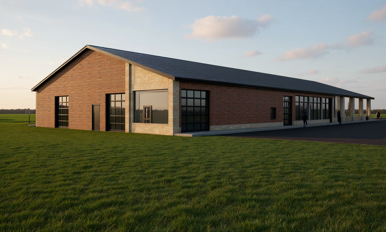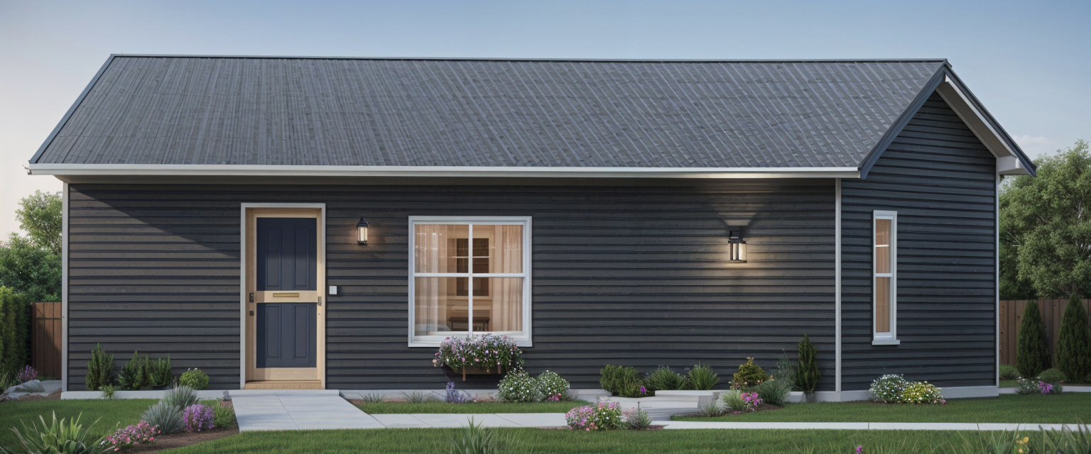 create a photorealistic front facing rendering of a two story elevated modern coastal home exactly matching the provided architectural elevation the image must be viewed from the front of the home straight on or at a slight angle no rear or aerial perspective architecture structure the entire area beneath the elevated home must be completely open supported only by exposed concrete pilings no enclosed walls storage areas or paneling under the house upper level exterior light blue horizontal siding with two double hung windows lower level left wall section above flood elevation natural or weathered vertical wood slat paneling all window and door frames including both doors and sliders must be black giving a strong modern contrast roof must be a gable roof only no hip roof using standing seam metal in galvanized or matte gray with the same pitch on both the main roof and porch roof include black horizontal railing on balcony and stairs hardscape landscaping install a solid paver driveway using light gray or ivory pavers extending beneath the home and continuing seamlessly into the backyard landscaping must be minimal clean and low maintenance with sparse coastal grasses and dwarf palms pool placement visible behind the home the swimming pool must be located directly in the backyard behind the home visible in the background of the front facing view the pool must meet these exact criteria perfect rectangle positioned parallel to the back of the house spanning the full width of the home from one side to the other surround the pool with the same paver material as the driveway setting location place the home on a dry inland lot on fort myers beach no water or ocean in view show nearby elevated coastal style homes to reflect the surrounding neighborhood environment lighting bright florida daytime sunlight blue sky crisp shadows overall aesthetic modern florida coastal stilt home with scandinavian minimalism shown from a front street perspective with an open concrete piling base and visible backyard pool
