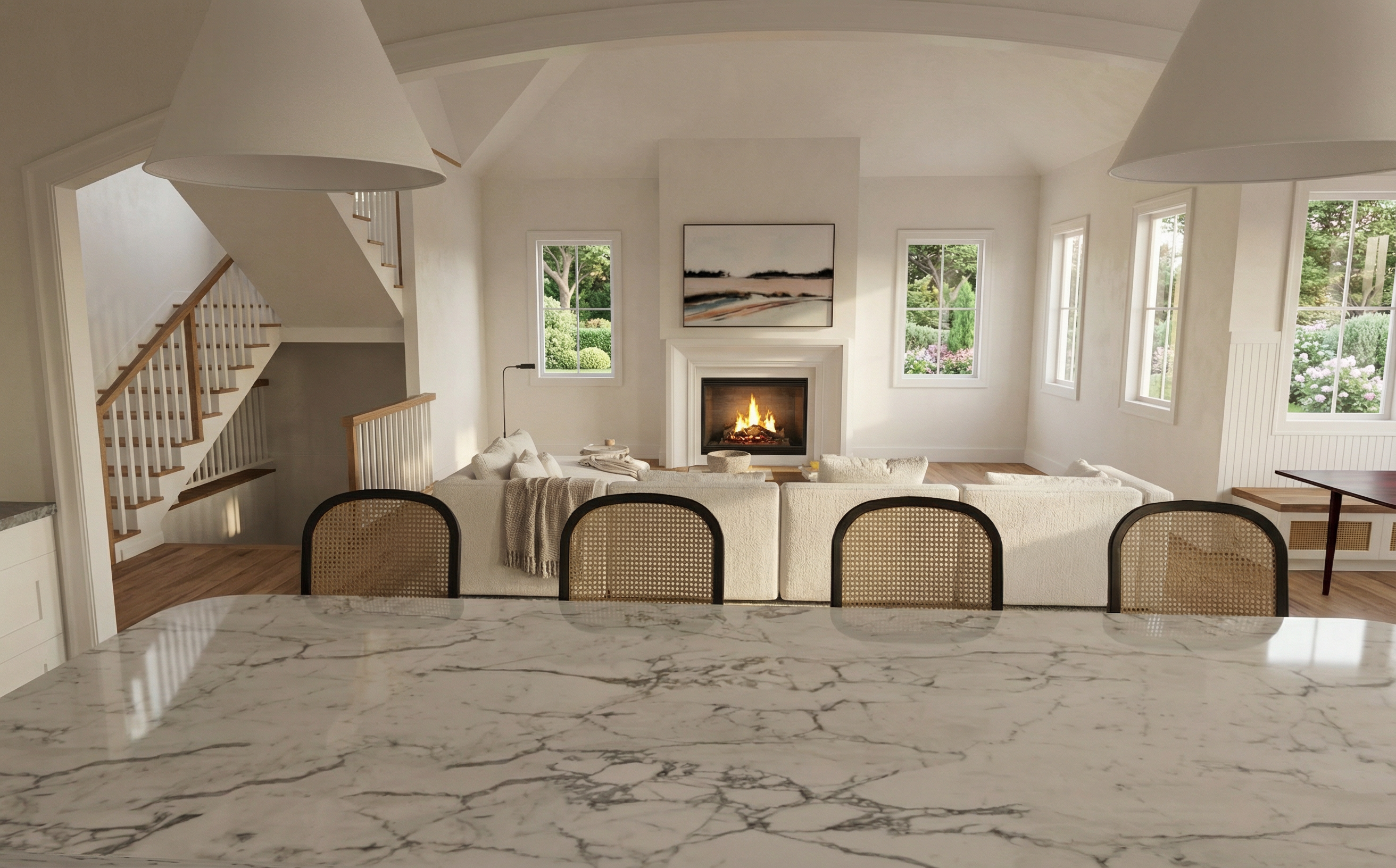 create a hyper realistic magazine quality render keep everything the same in the photo no green in the dining space