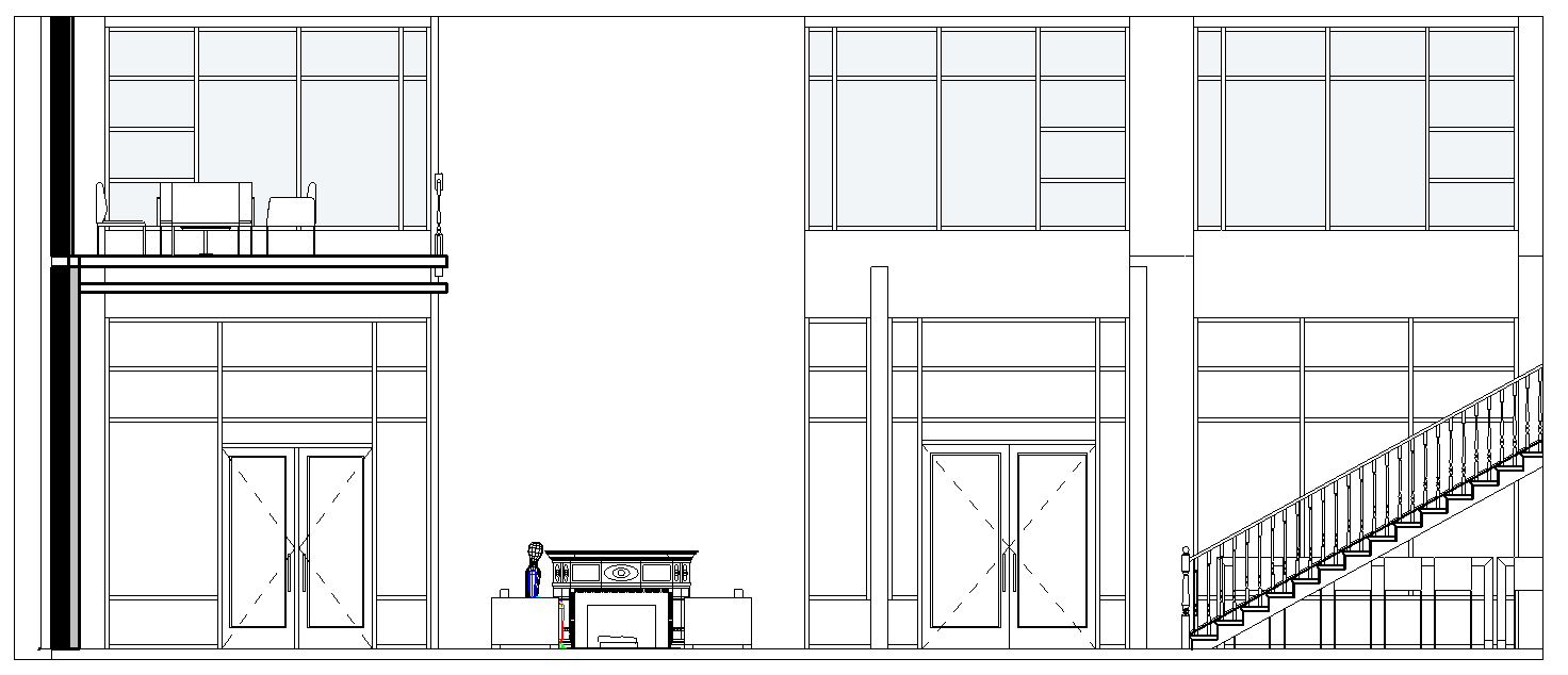 an enhanced elevation portrayal of this two story lobby fireplace feature using the reference images for vibes the elevation should include textures that match those pictured in the sketch and design board referenced