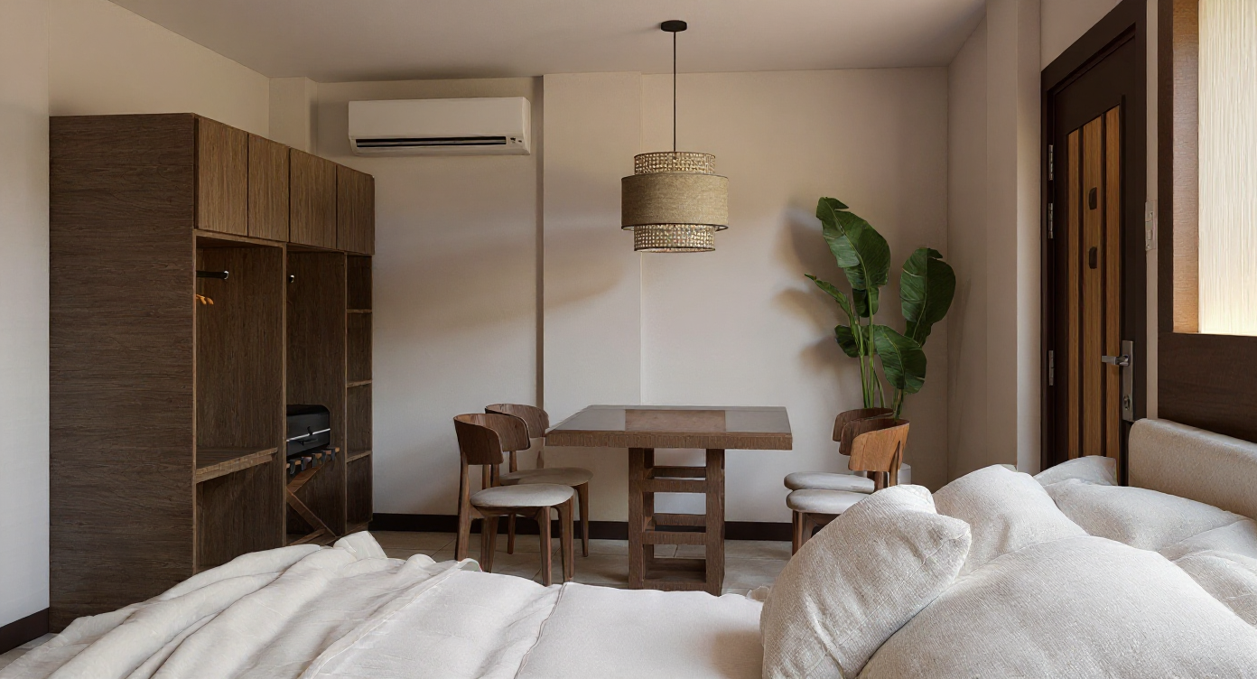 change headboard material to soft leather light olive green remove carpet remove bedside tables remove lamps and all clutter beside the bed remove sunlight on the walls