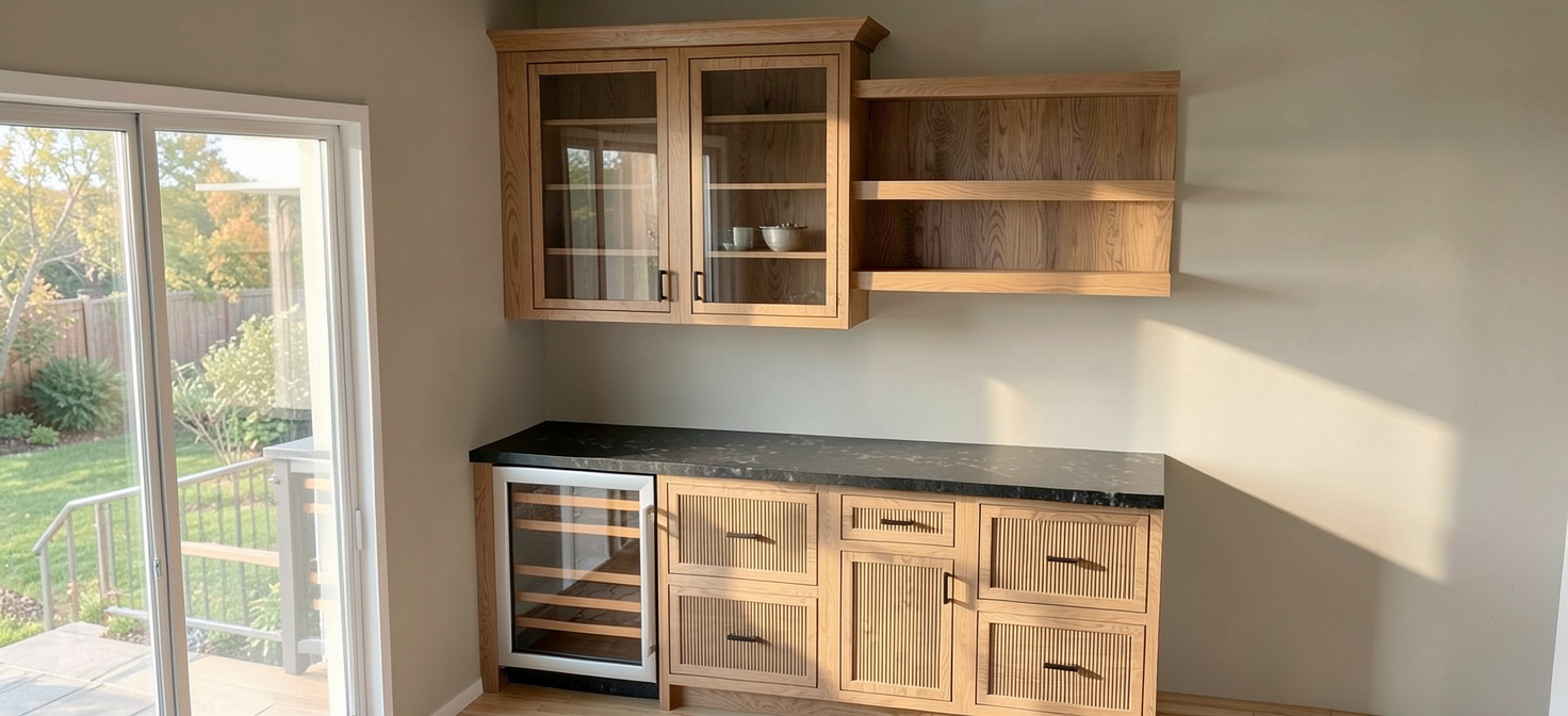 make mirror frameless totally square and the cabinet is floating remove kick