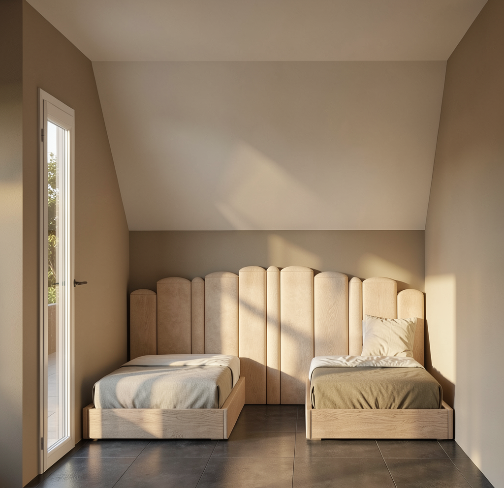 relight this interior scene using only natural daylight do not modify the architecture materials finishes furniture or camera position in any way all ceiling lights must remain turned off and no artificial light sources should be visible or contribute to the scene the space should appear illuminated exclusively by daylight entering through the existing windows create a bright evenly lit atmosphere with soft diffused light that fills the entire room light should penetrate deeply into the space gently illuminating walls furniture and corners without leaving dark or heavy shadow areas avoid strong directional sunlight or harsh contrasts shadows should be soft subtle and low in contrast use balanced exposure so the scene feels luminous but still realistic avoid overexposure or blown highlights and ensure no areas are underexposed maintain accurate material colors with a neutral to slightly warm daylight tone whites should appear clean and clear not gray or yellow the final result should feel like a naturally bright daytime interior calm and airy with smooth light gradients and a soft photorealistic quality similar to architectural photography lit only by natural daylight