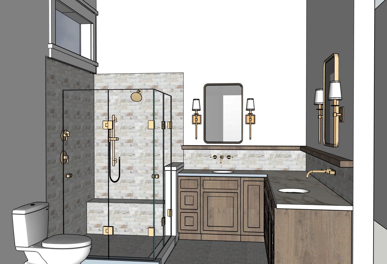 warm lighting marble mosaic floors and backsplash marble subway tile on shower walls