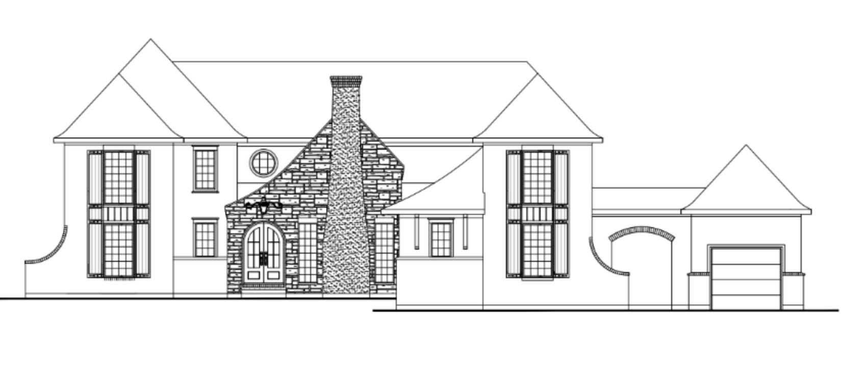 do not change teh design of the home the roof color is a dark brown the stucco of the home is a bright white the windows are white the two story shutters are a light stained wood color and the garage door matches the stone is a soft white with a muted brown