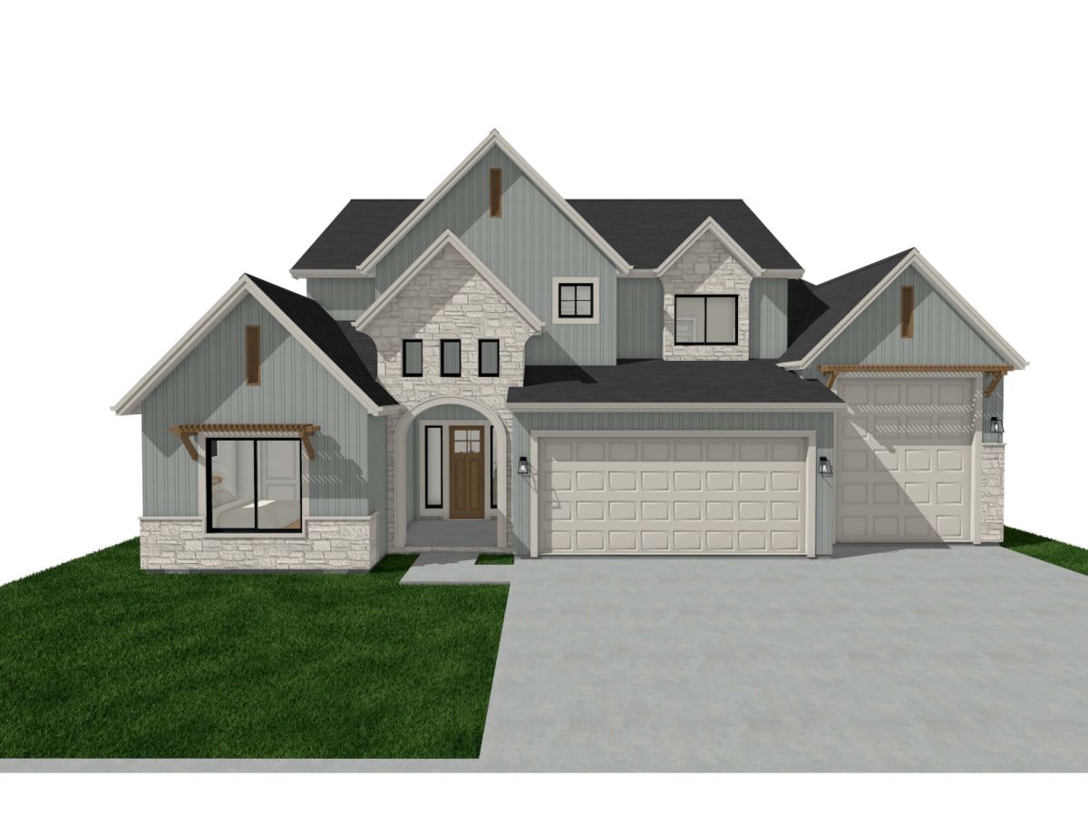 place the building on a quiet suburban street at dusk with the sky transitioning from deep blue to warm amber at the horizon feature a neatly landscaped front yard with a green lawn low boxwood hedges and accent uplighting illuminating the facade and surrounding plantings include a driveway with a car parked outside a lit front porch and warm light spilling from interior windows show neighboring homes lining the street with their porch lights and interior lights on street lamps beginning to glow and a family or couple visible on a nearby porch to add warmth and life to the scene