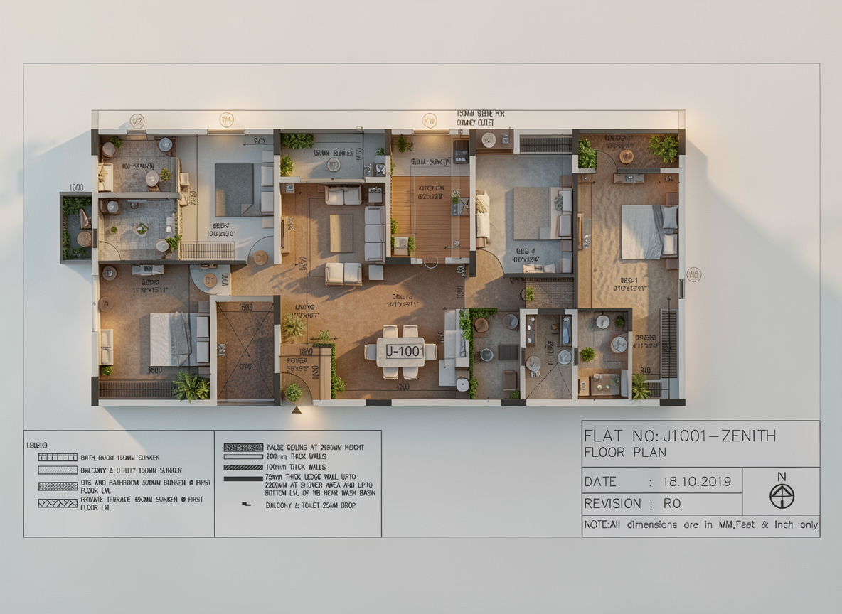 make the labels brighter and bold in floorpan and the flooring in light grey shade except the furnitures in brown keep the green plants in balcony area only enhance teh windows and door ways brighter and clearer