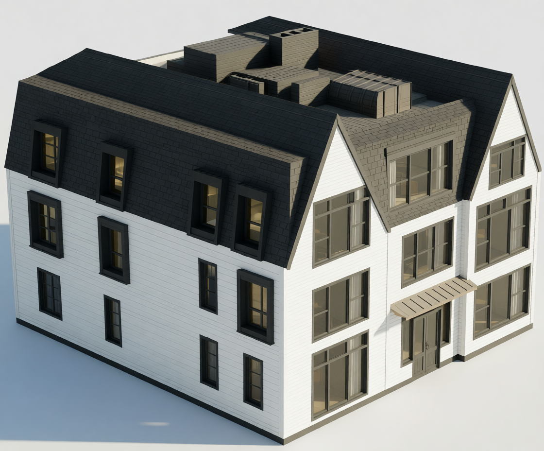 make this image look like a real image the siding in the gables should be a white straight stack shingle