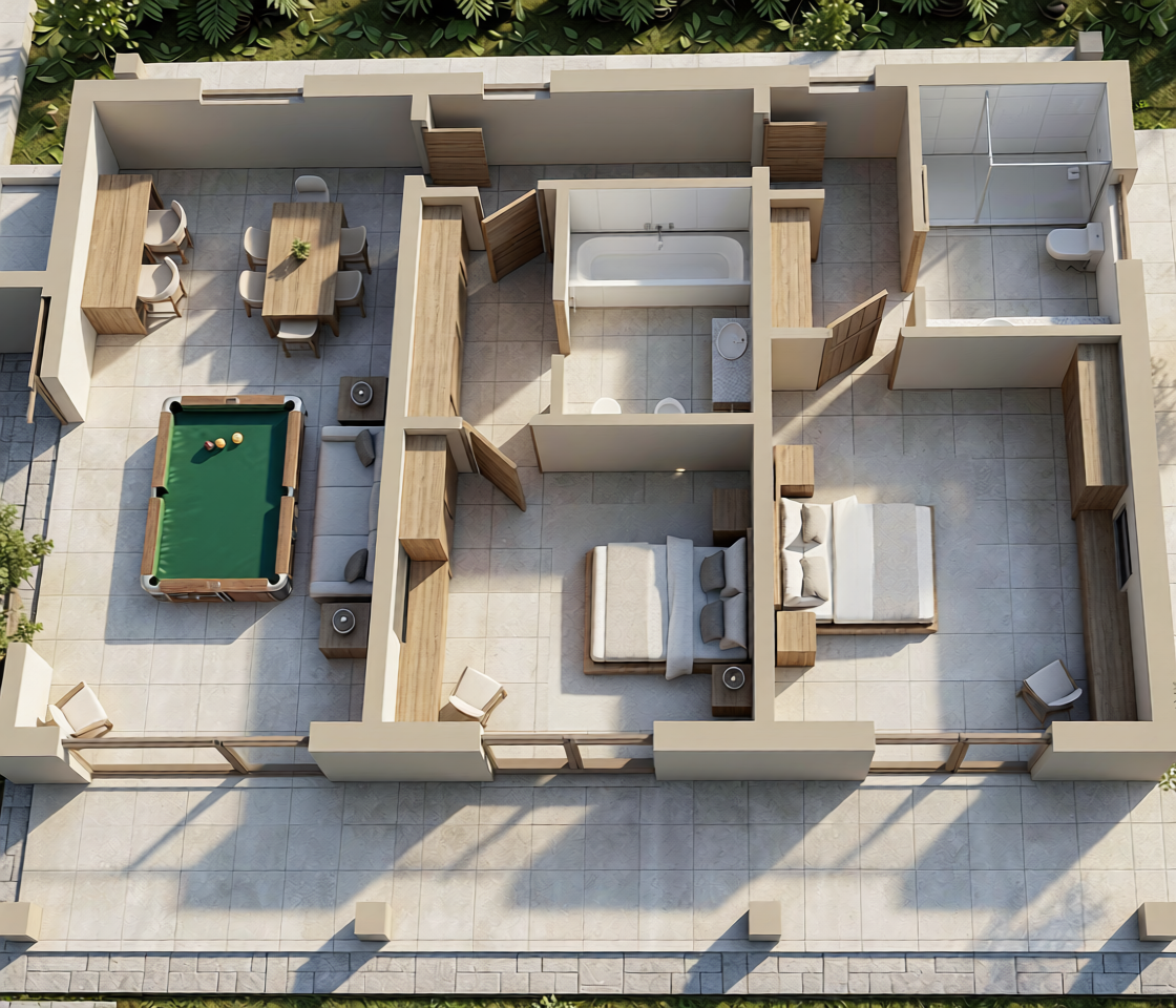 delete top table on the right hand side above pool table