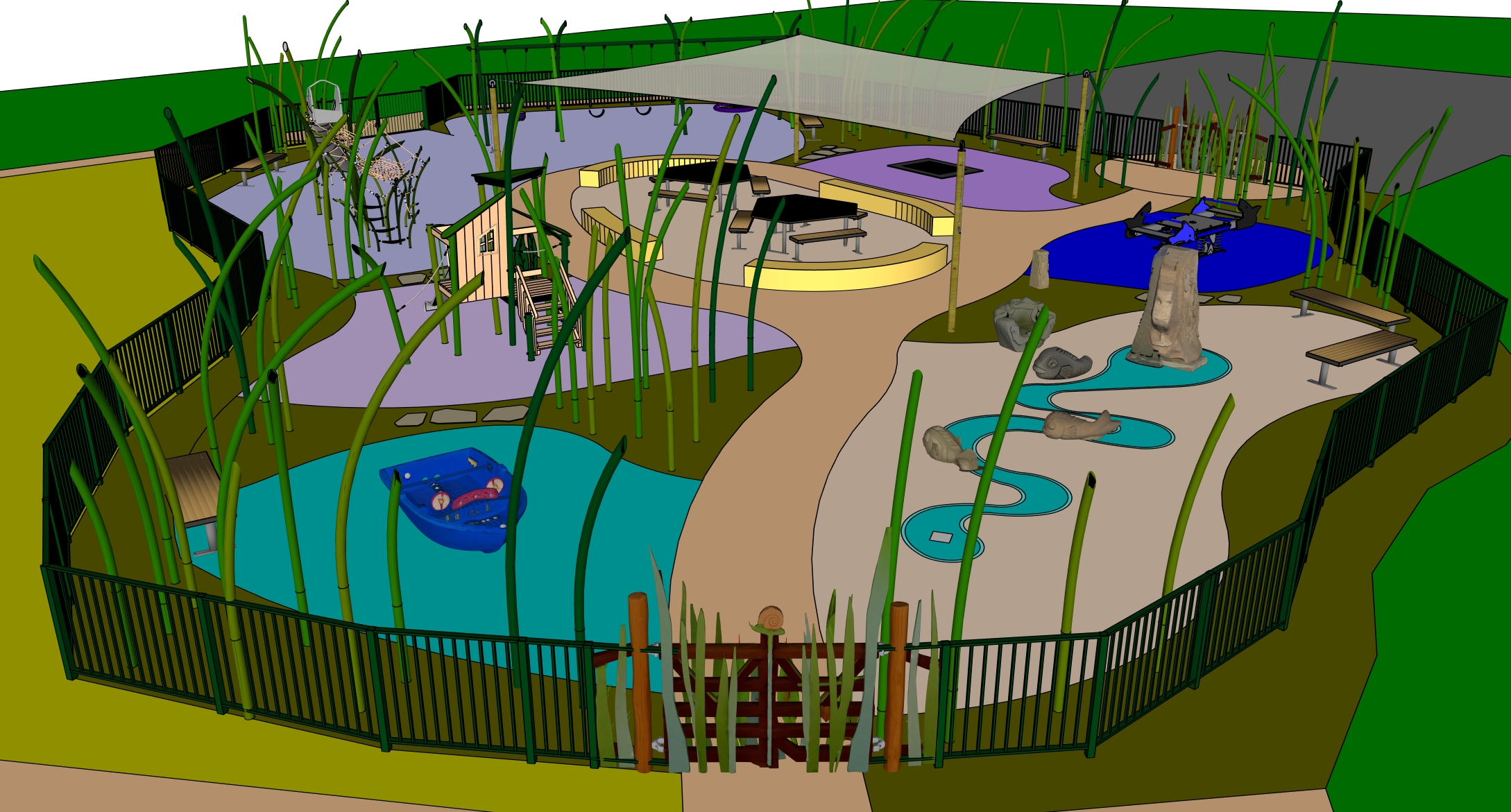 modernist exterior shot highlight here is the prompt use the uploaded 3d model image as the primary reference create a hyper realistic cinematic ray traced 3d render that looks like a frame from a high budget hollywood feature film preserve perfect scale proportions and surface detail fidelity from the original model apply physically based rendering pbr with global illumination path tracing and real time ray traced reflections and refractions use cinematic lighting with a strong key light subtle rim light and practical light sources in the scene add soft volumetric lighting light fog and atmospheric haze for depth ensure natural light bounce realistic shadow softness and controlled highlights with subtle bloom and no overexposure use ultra detailed materials with accurate albedo roughness metallic and normal maps add micro surface imperfections such as scratches dust fingerprints and realistic wear apply correct fresnel reflections and subsurface scattering where applicable to achieve true photorealism frame the scene with a cinematic camera angle low angle or three quarter view using a 35mm or 50mm lens look apply shallow depth of field with realistic bokeh film style composition following the rule of thirds and subtle motion blur only if the scene implies movement place the model in a believable story driven environment that enhances realism and emotion add cinematic elements like light shafts reflections ambient particles and environmental interaction to make the scene immersive and narrative focused apply professional post processing with filmic color grading cinematic teal orange or neutral lut hdr tonemapping natural contrast curves preserved shadow detail and subtle film grain the final image should appear ultra high resolution 8k look noise free and indistinguishable from real photography final style hollywood cinematic still unreal engine blender cycles octane render quality hyper realistic dramatic immersive physically accurate no stylization no cartoon look no plastic materials the color in the playground are softfall top right hand corner is car park for 2cars add couple trees in the background architecture