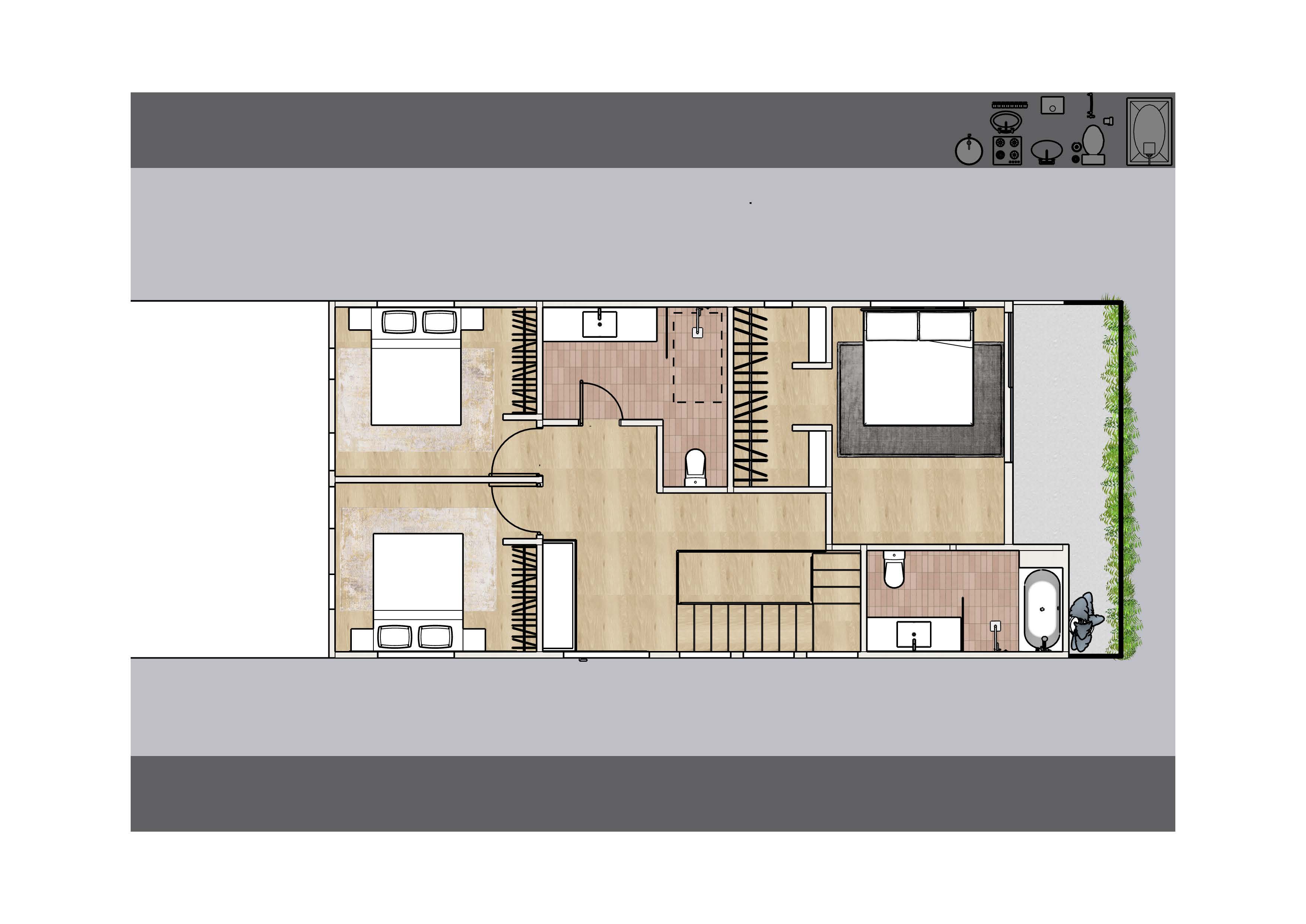 keep floorplan and colours but make it look like it has been generated in photoshop and similar t style to a second image architecture