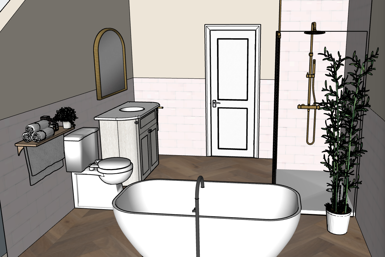 one spot light on above shower led mirror above vanity and dimmed spot light over the vanity