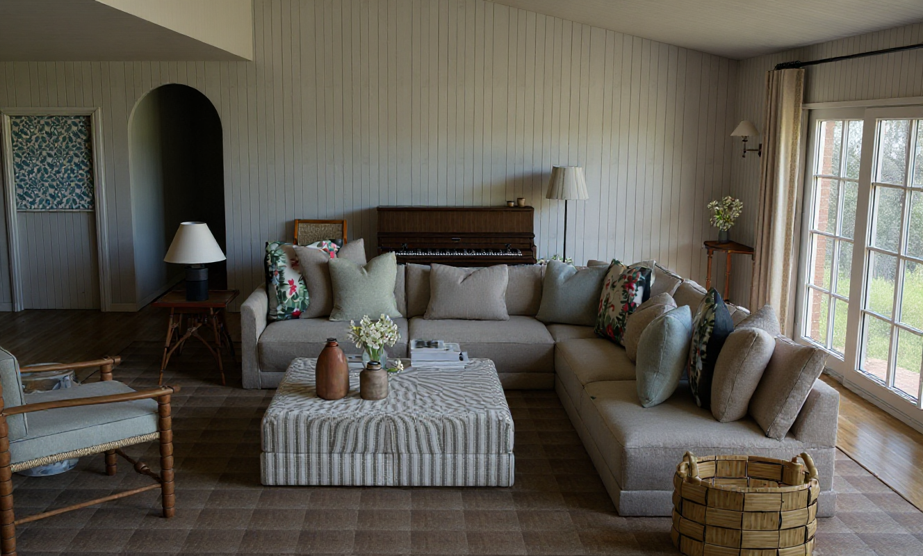 upper roof black asphalt shingles lower roof metal roofing white board and batten siding black windows add gutters and downspouts a few trees in the background light landscaping to the front maintain geometry