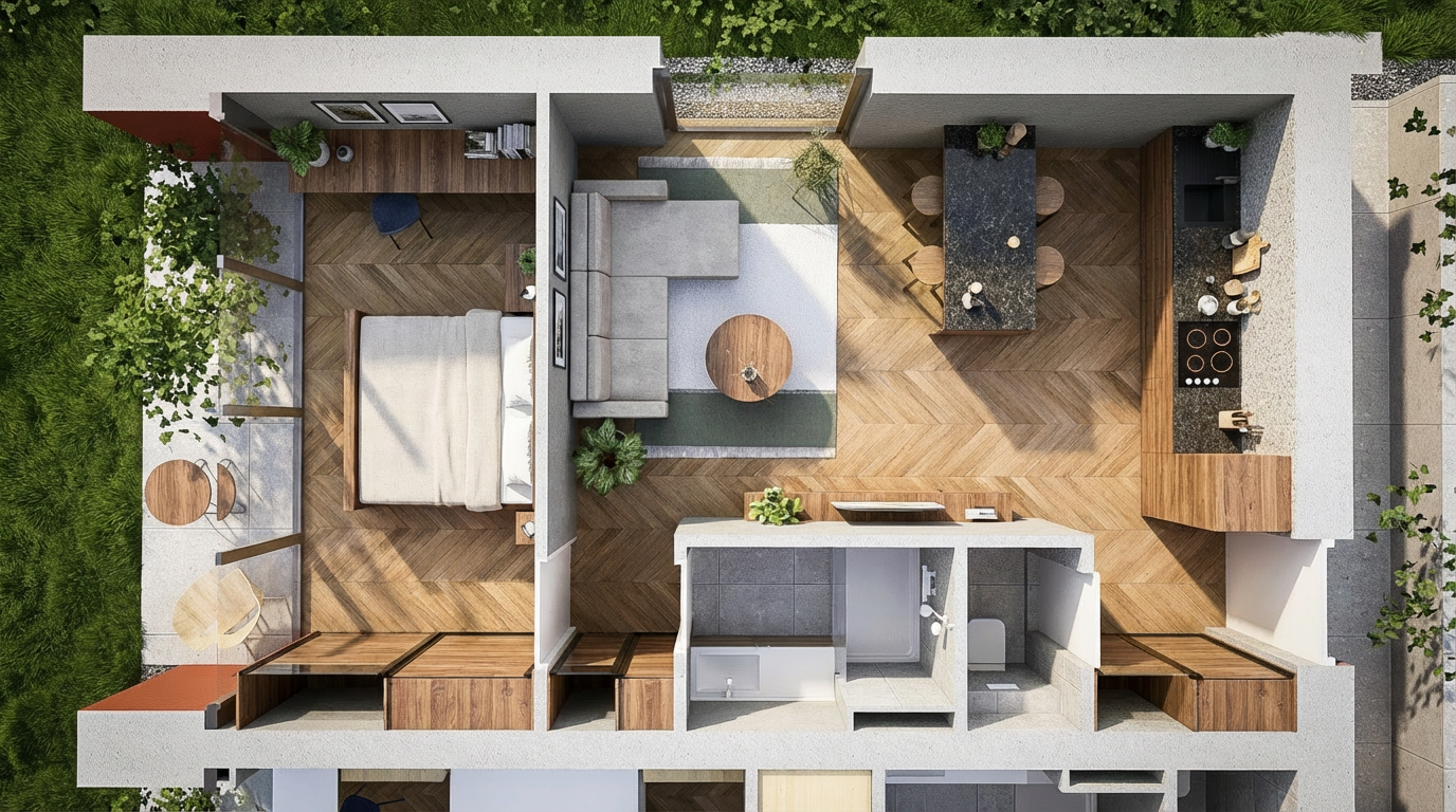 barndominium exterior shot render a modern suburban house with a bright and inviting atmosphere the house has a classic design with three gables and a two car garage the exterior walls are color and pattern blocked with light and dark colored hardie the roof is a sleek dark charcoal gray black windows with grids do not use brick any where on the house the front steps and entryway are made of light gray stone surround the house with lush green grass and tall casting soft shadows the sky is clear with a gradient from azure to soft pink as if it s early evening no trees architecture