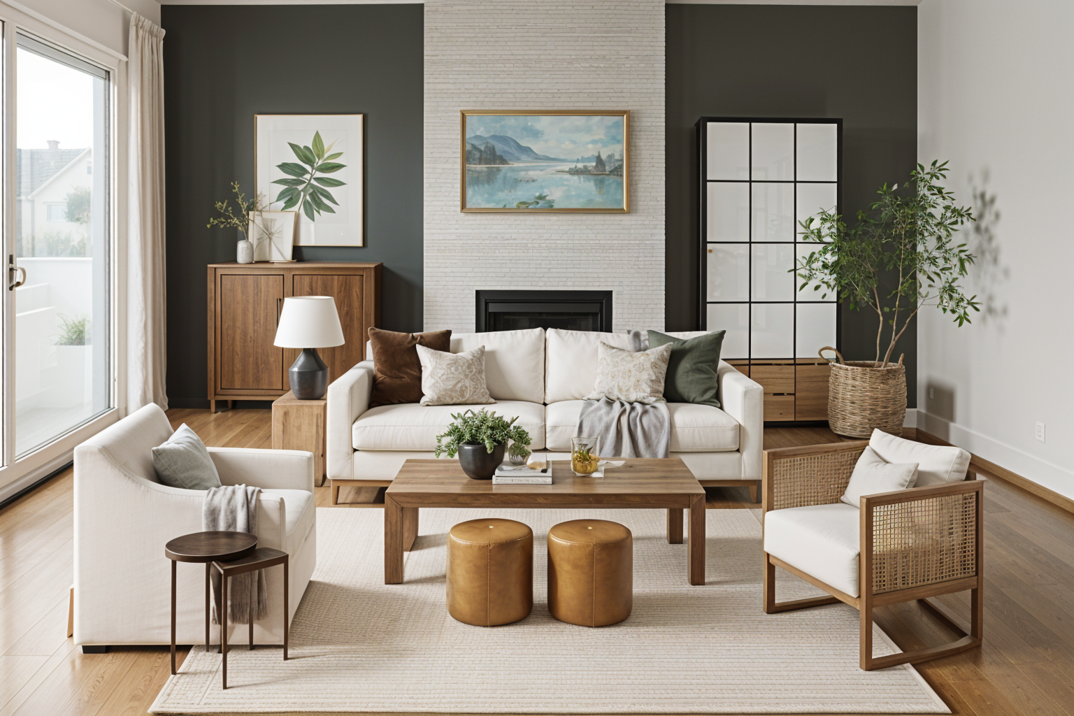 create a photo realistic image with a real golf course hole in the projector add a warm herringbone wood floor and nice lighting on the ceiling