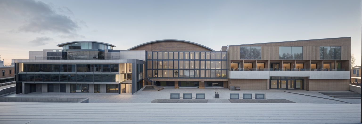 watercolor rendering north carolina mountains wood siding with shed roofs and clerestory windows natural landscaping and plants bushes trees grass water color render architecture