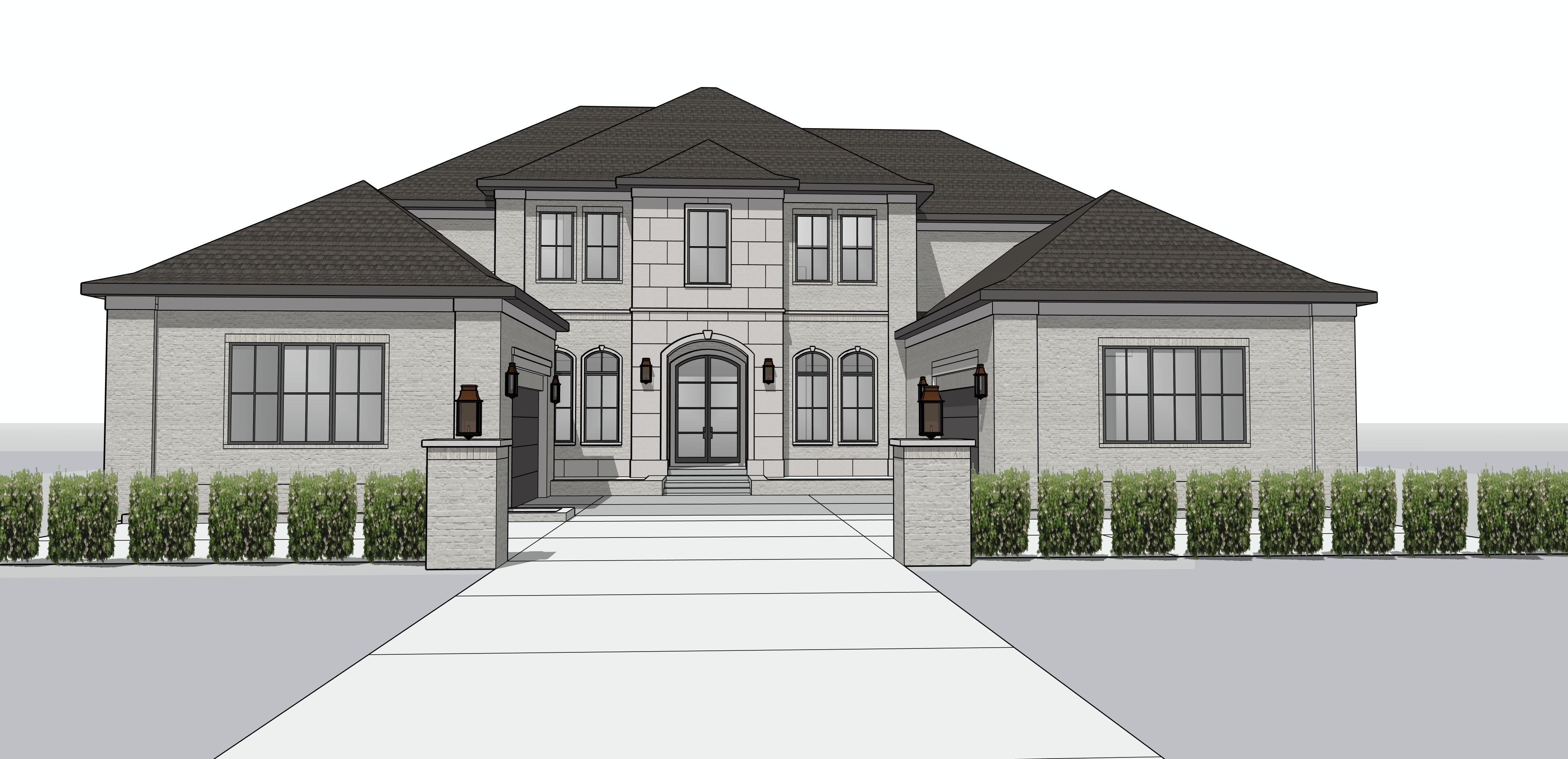 estate setting white brick with limestone facade at entrance maintain features of landscaping maintain lawn at front of house afternoon lighting