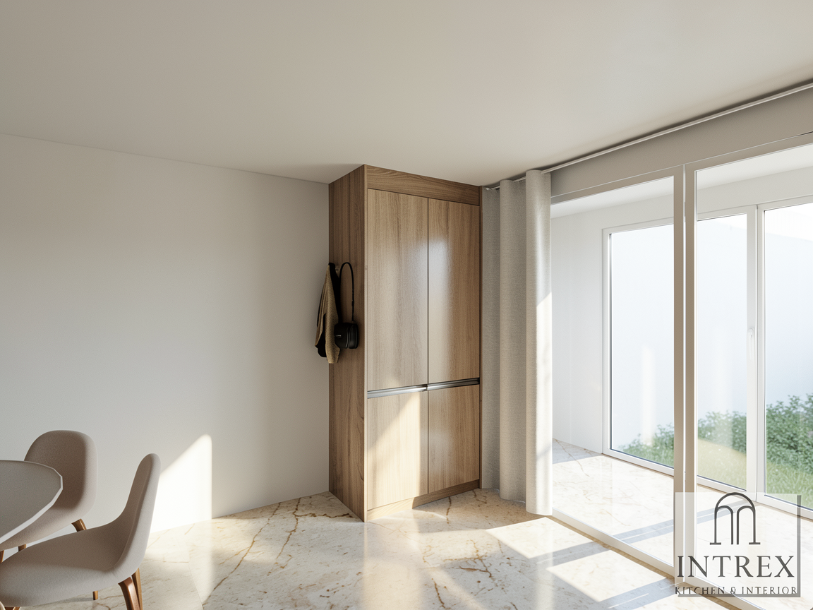 keep the original color palette of the building and materials unchanged only modify the awning by replacing it with an elegant rich blue fabric canopy that looks refined and high end add warm architectural lighting around the facade under the awning and along the entrance to create a luxurious and sophisticated evening atmosphere the lighting should highlight the textures and give the space a premium upscale look