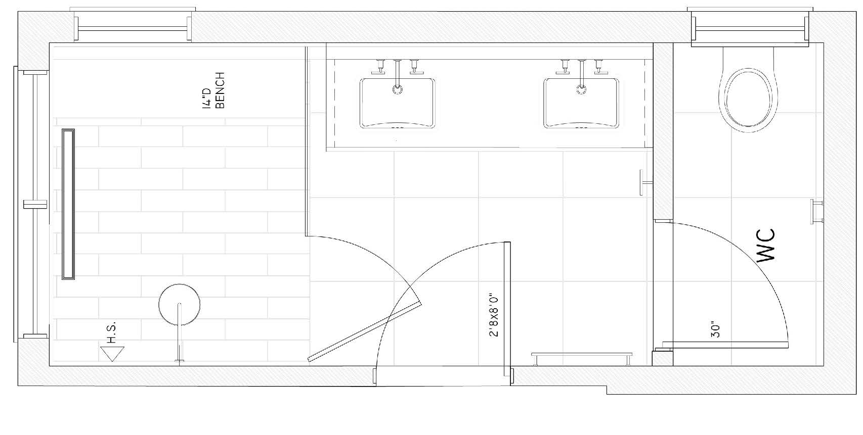 contemporary interior shot use light wood ribbed wall tile above vanity sink area wall mounted vanity faucets and waterfall countertop on vanity architecture