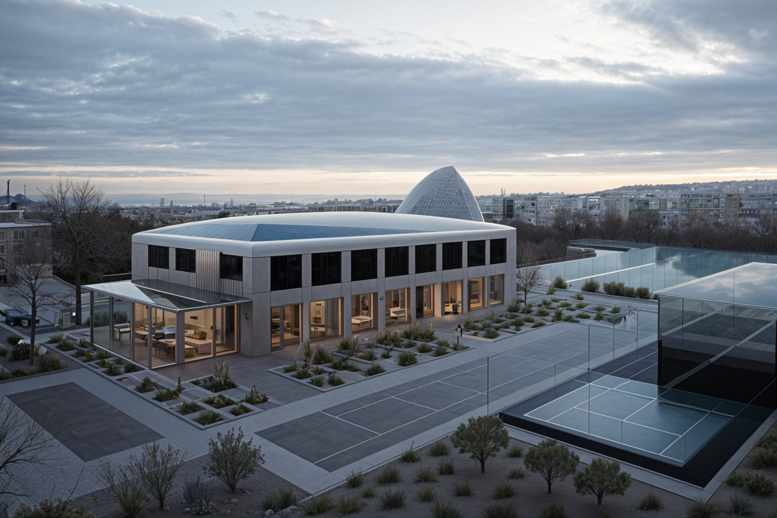 minimalism exterior shot night exterior lighting with uplights night atmosphere with rain architecture