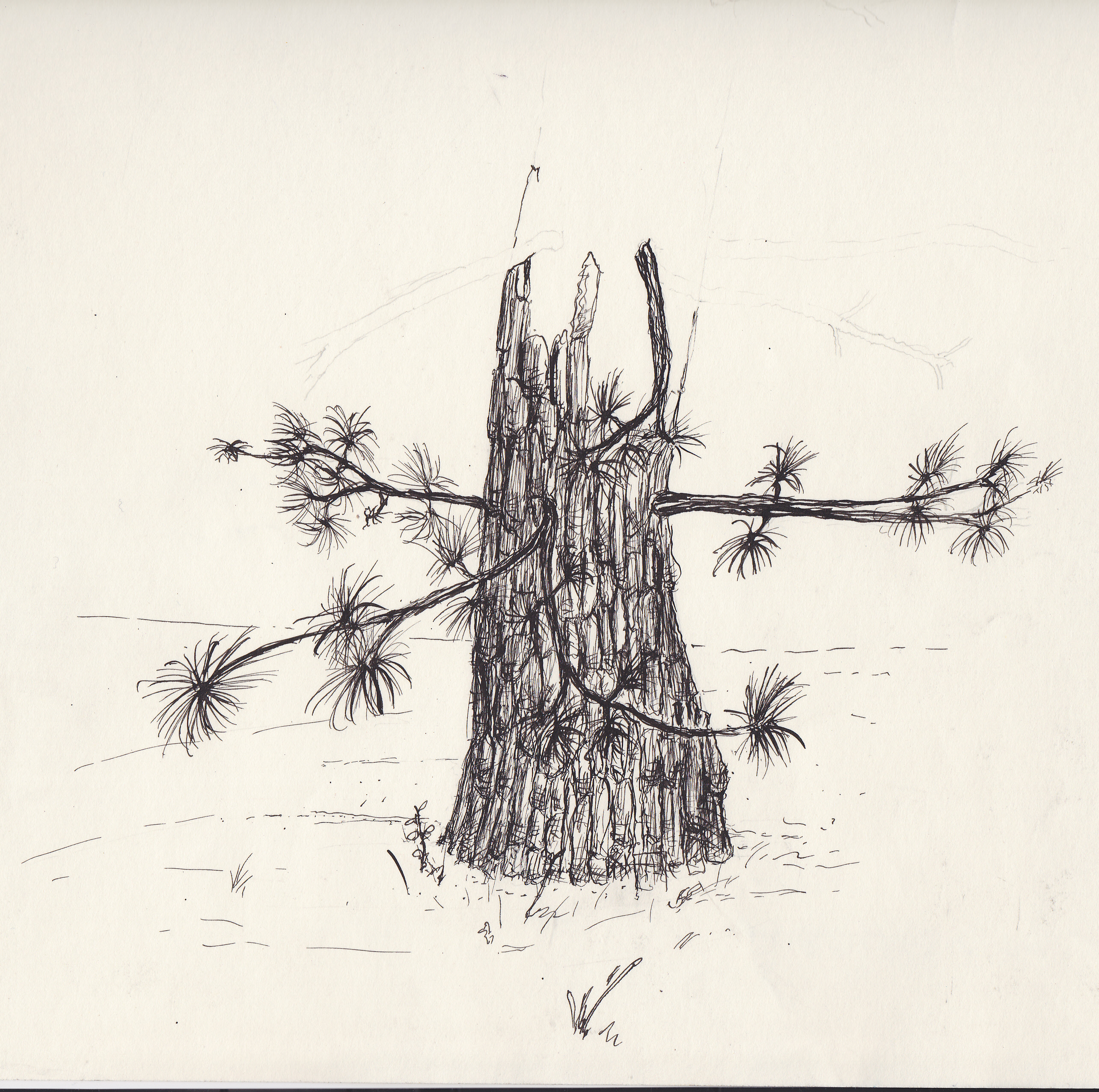 color to pine tree only render per original add dimension totree trunk background to be foggy with a dark mist at ground level