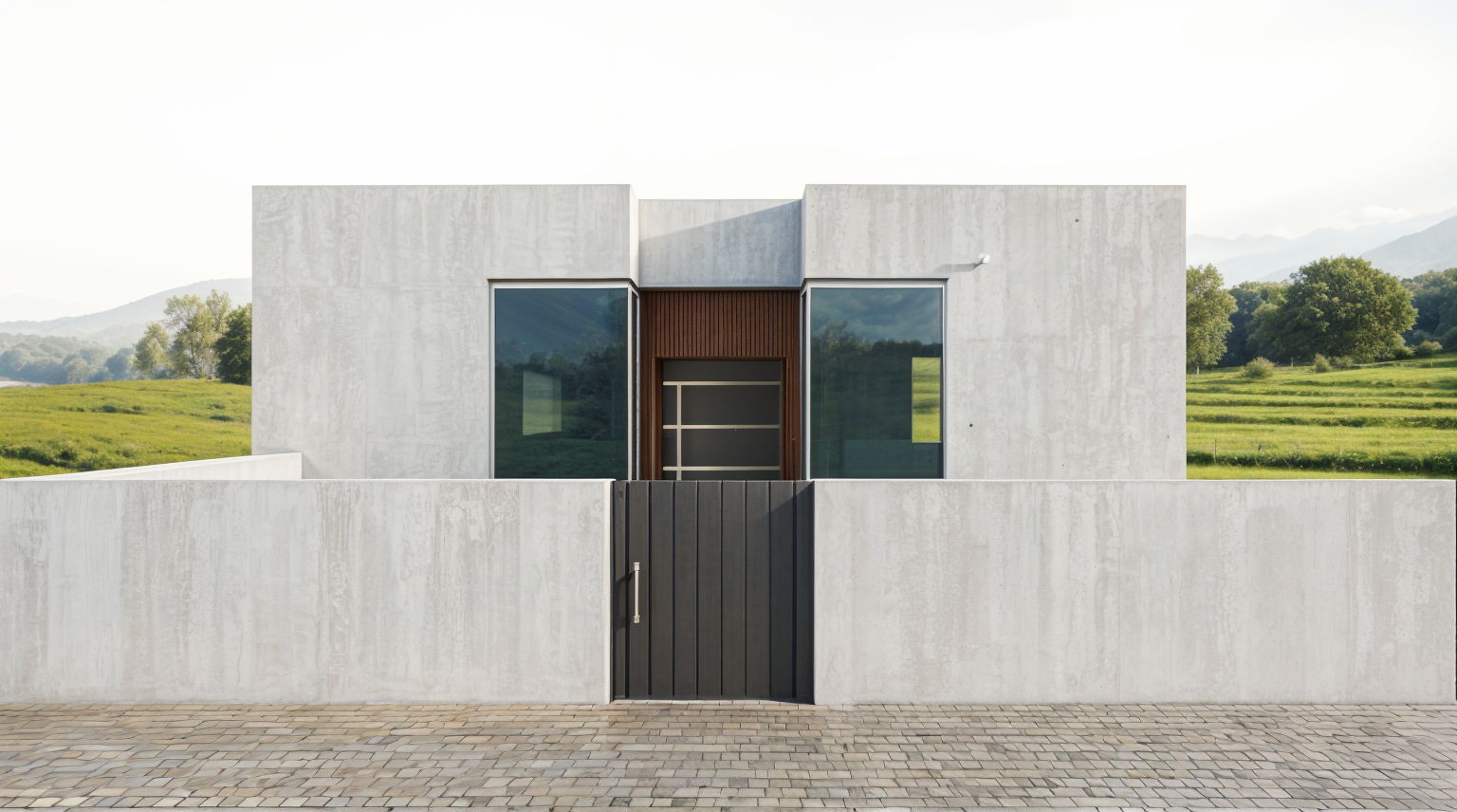 exterior shot remove the footprints in the snow make the wooden decorations at the peaks much smaller dark blue siding