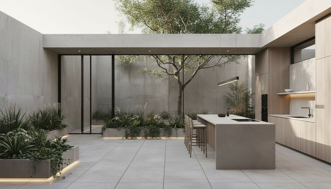 house on land that slopes down on the left side show minimal native appalachian plants and a lush lawn in front show a few trees in the back yard and the cherokee national forest in the far background driveway is on the right side with a three car garage house is in a neighborhood with minimal space between houses no houses behind them