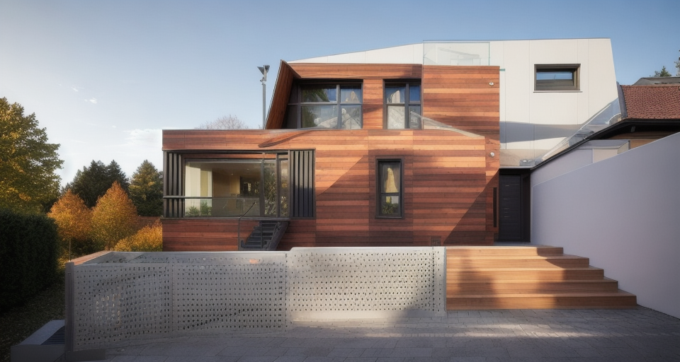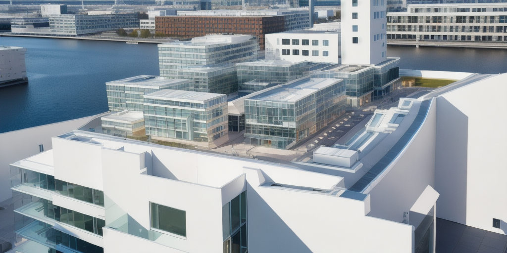 infront of the building an outdoor sculpture gallery of artistic forms made from brick that follow a path leading to the centre of the build architecture