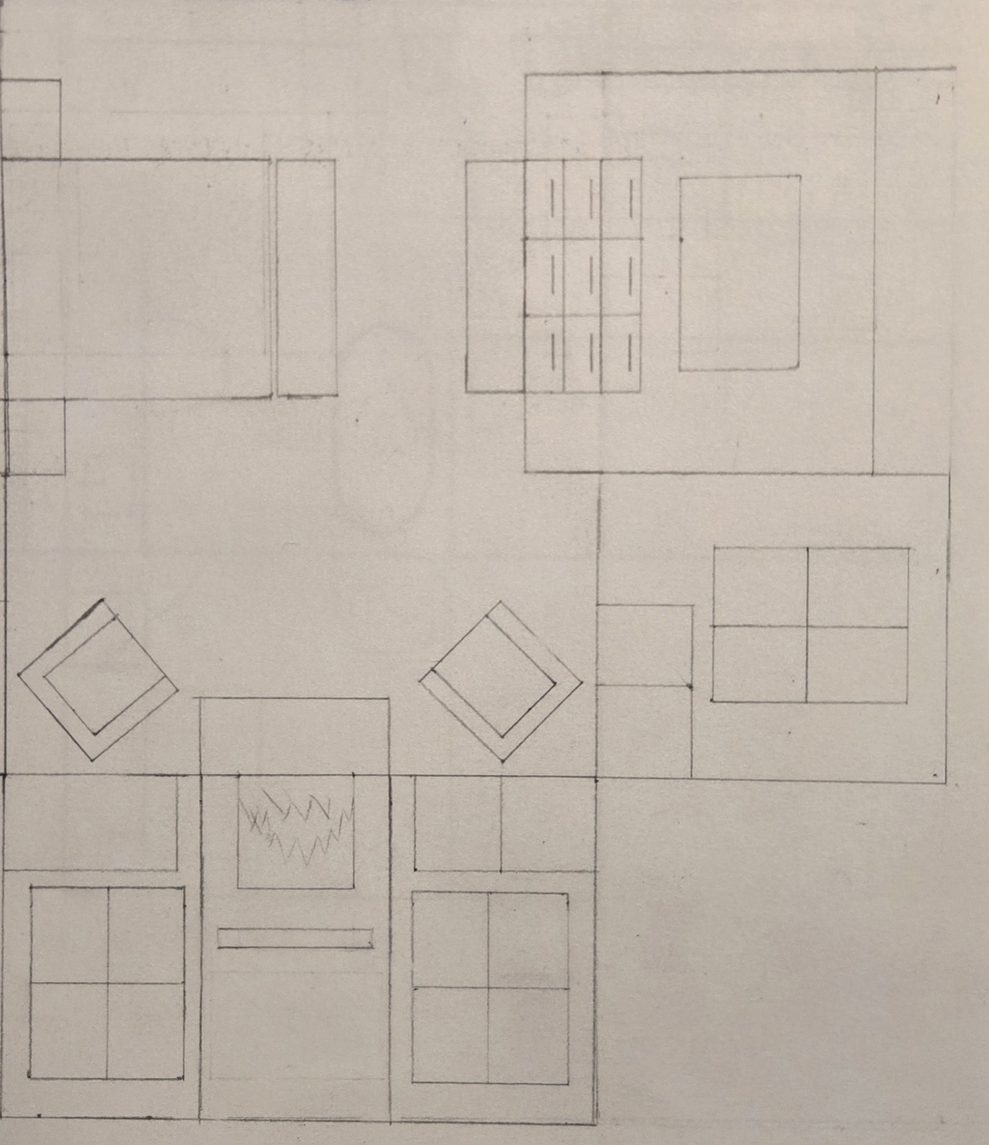 create a beautiful 3d render of this master bedroom use soft neutral colors like beige for the walls and white oak floors for a cozy and elegant atmosphere add warm ambient reading lighting on each side of the large king size bed use an olive green for the arm chairs for a modern organic look ensure the geometric shapes are emphasized with subtle shadows for a three dimensional look add a touch of greenery with some indoor plants to enhance the serene environment