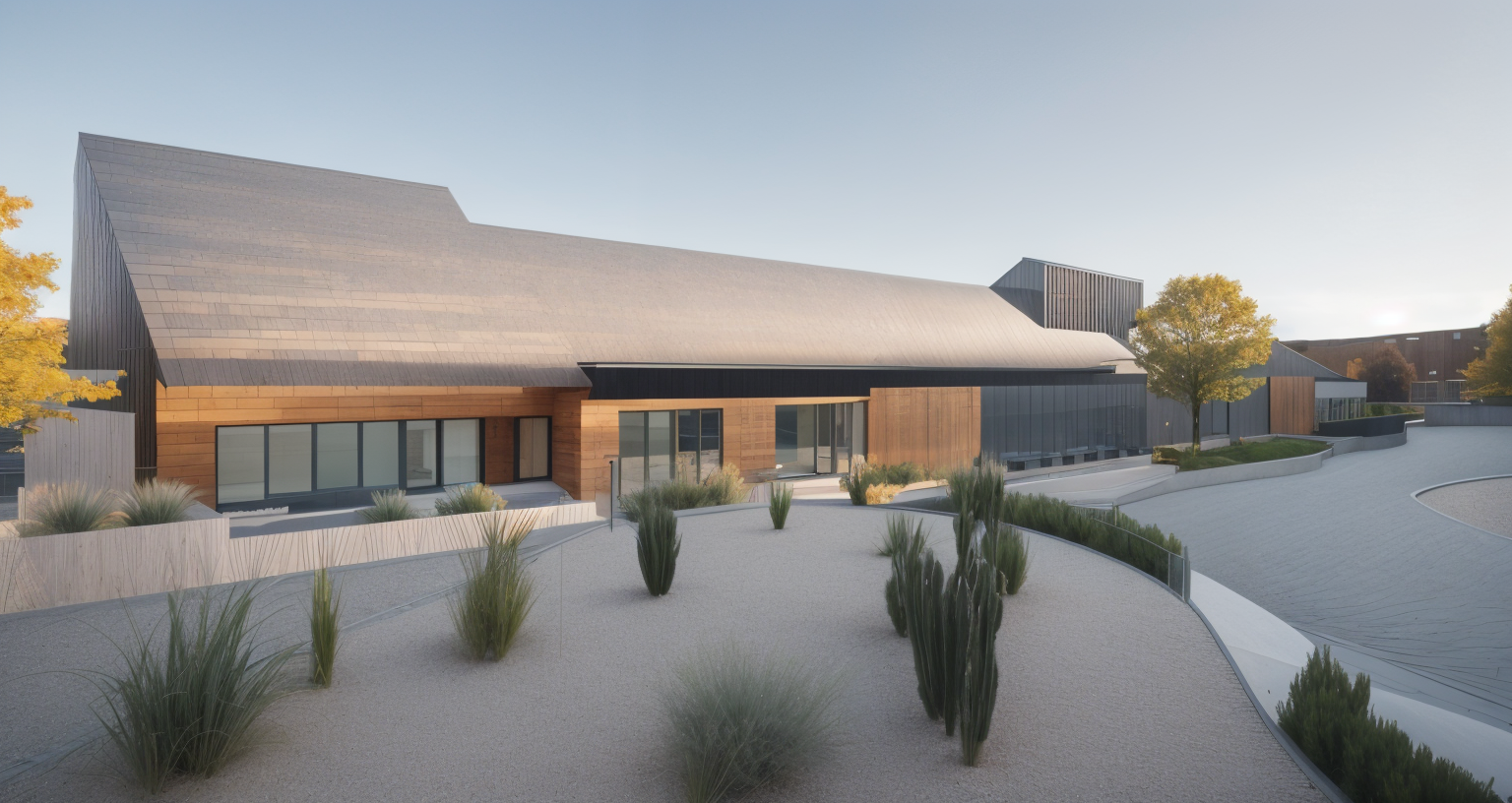 parametricism exterior shot create a futuristic urban cityscape with tall sleek skyscrapers the buildings have smooth reflective glass facades displaying a gradient of blue and silver the sky is a vibrant sunset with hues of orange pink and purple casting warm reflections on the buildings surfaces soft ambient lighting illuminates the streets creating a welcoming atmosphere add lush green parks and trees dispersed among the buildings adding a touch of nature to the modern environment a light mist adds an ethereal quality to the scene architecture