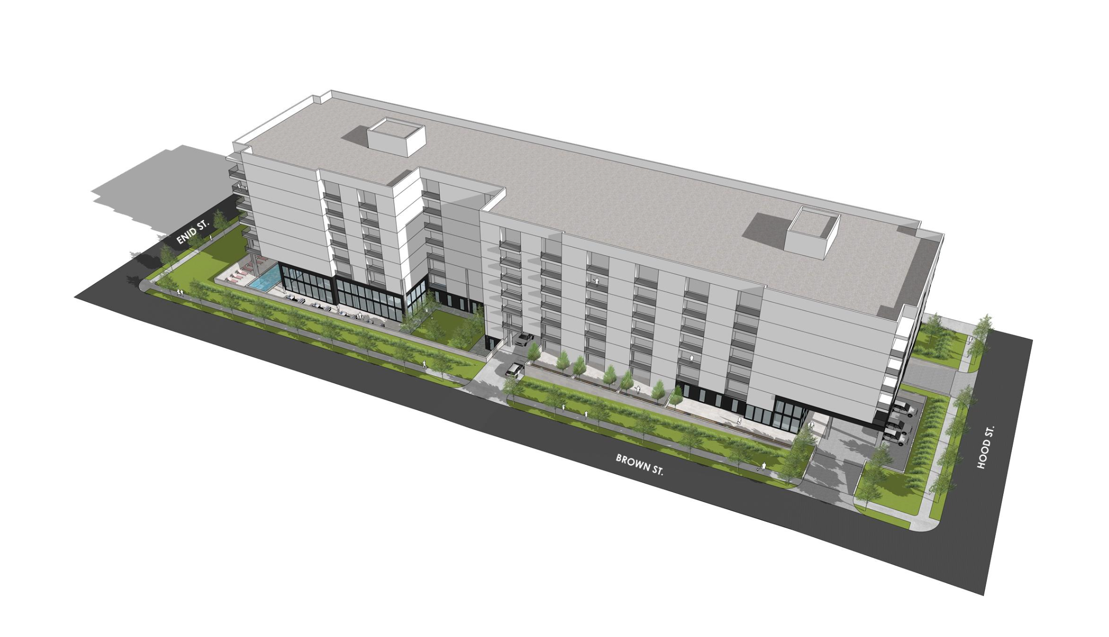 modernist exterior shot create a rendering of a high end apartment building based on this massing model it needs much more detail like windows and fenestration it is located in a very affluent neighborhood of turtle creek in dallas tx the style of the building should be rooted in old money dallas but with contemporary details architecture