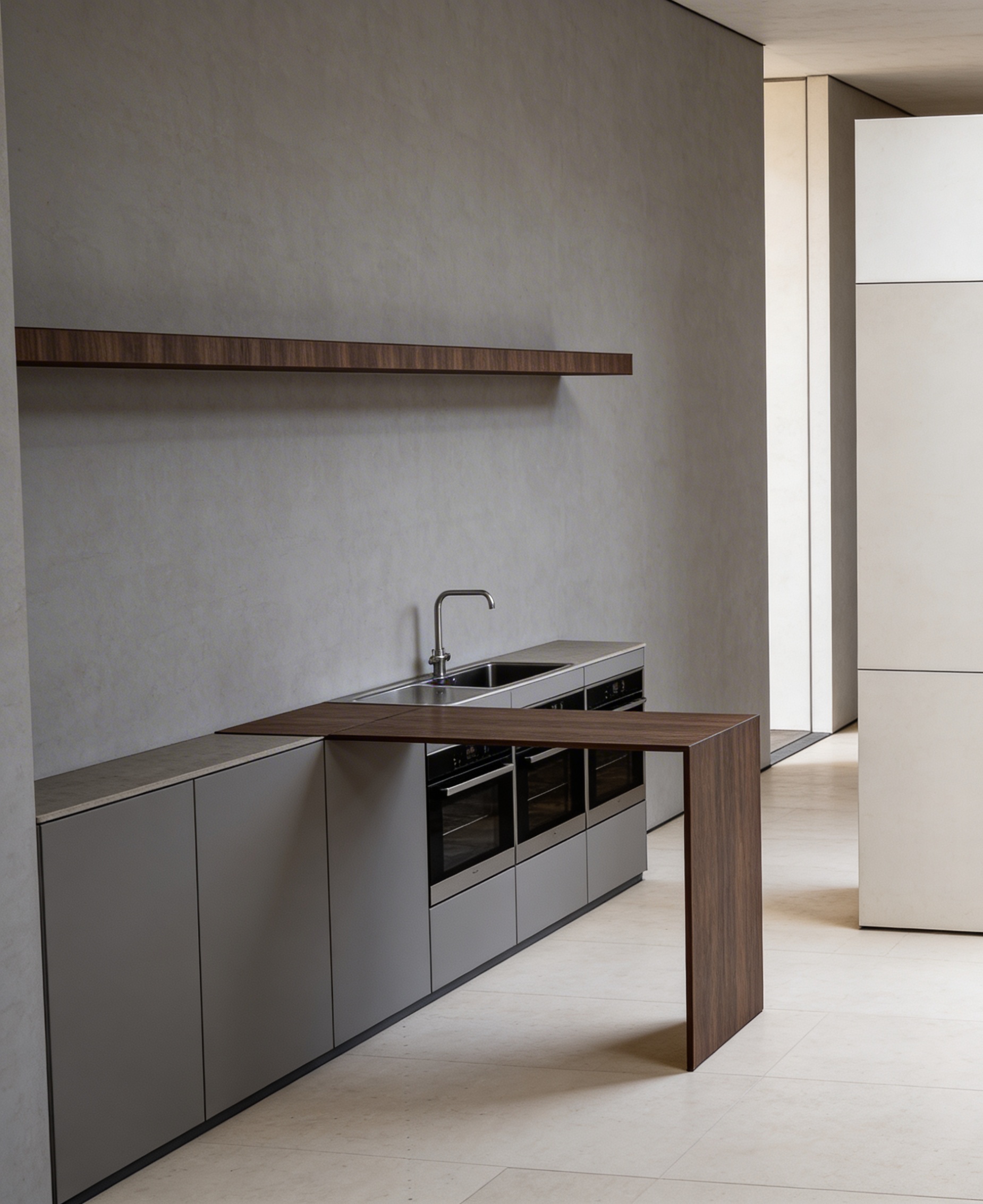 light beige units and light wood top and shelves