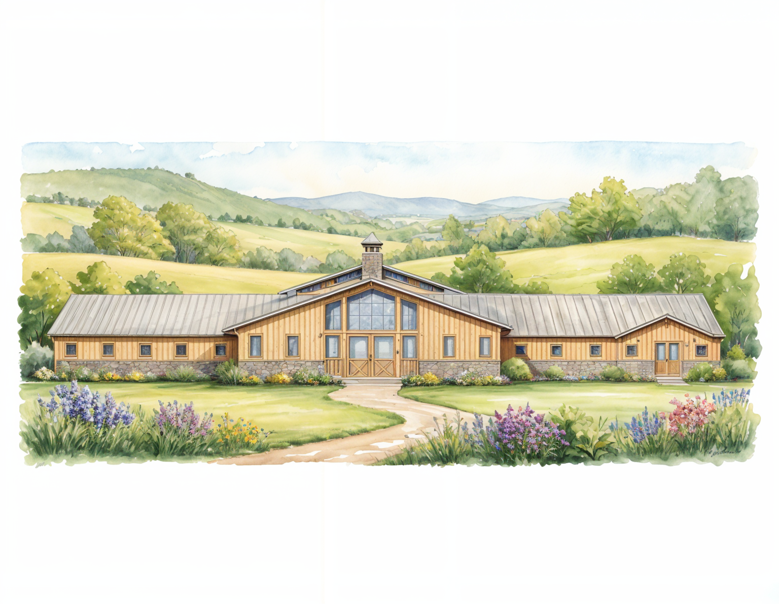 using attached drawing to render the kitchen add hood on top of range no sinks white wall lighter wood tone waterfall at short side of island go back to previous show outdoor at glass door
