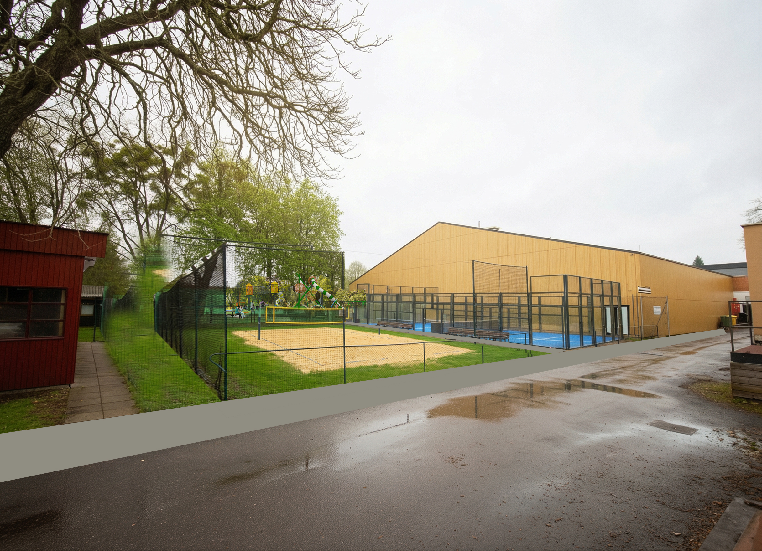 summer midday wet floor add players make fences profi blue