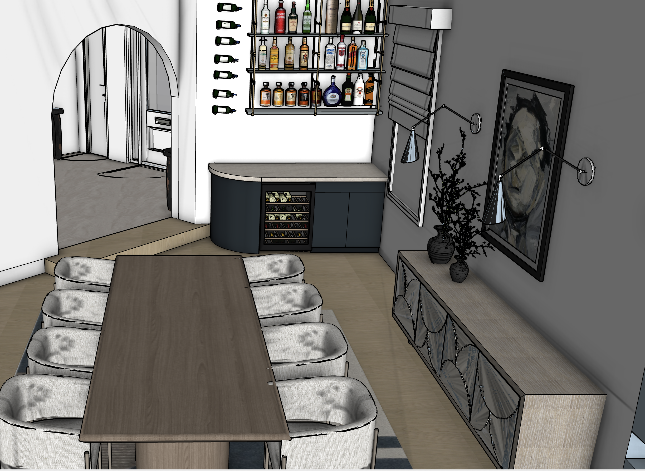 add a mirror behind the bar and make photorealistic
