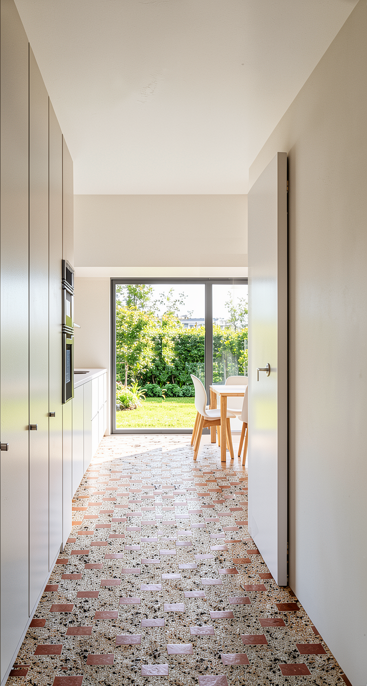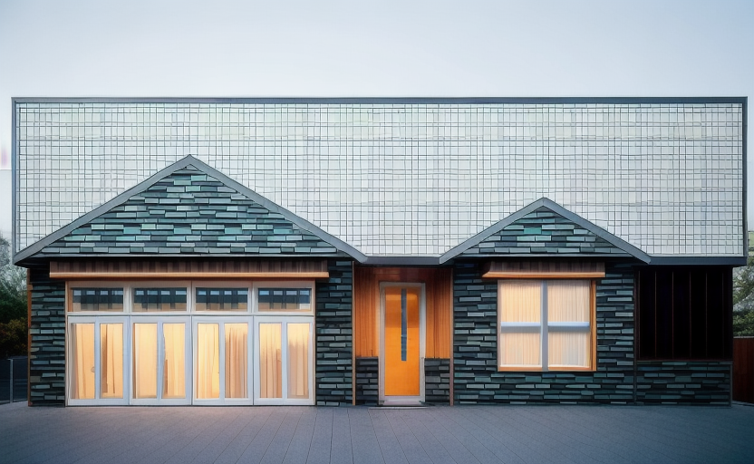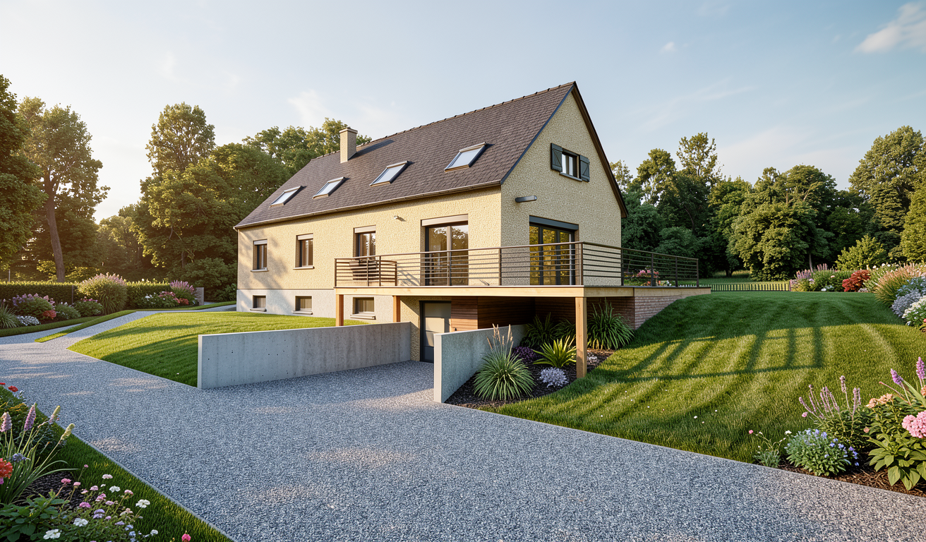 make as photorealistic as possible while keeping textures the same as selection professional landscaping in a lightly wooded scene with good lighting match materials to plan and remove any text dark grey siding black trim windows garage door black louvered shutters