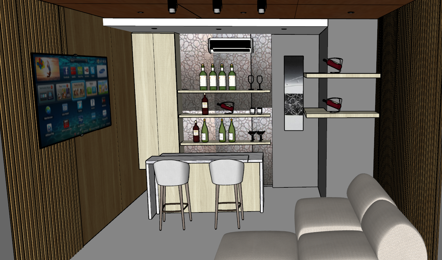 reddish mahogany wood planks flooring lighting fixtures illuminates the area with cove lighting at the white ceiling and silver accent wall