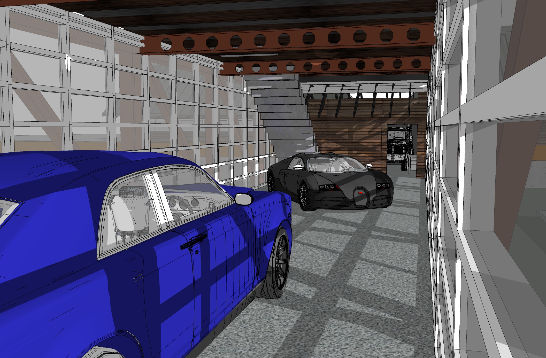 modern design bright sunlight red structure large grid windows hyperrealistic