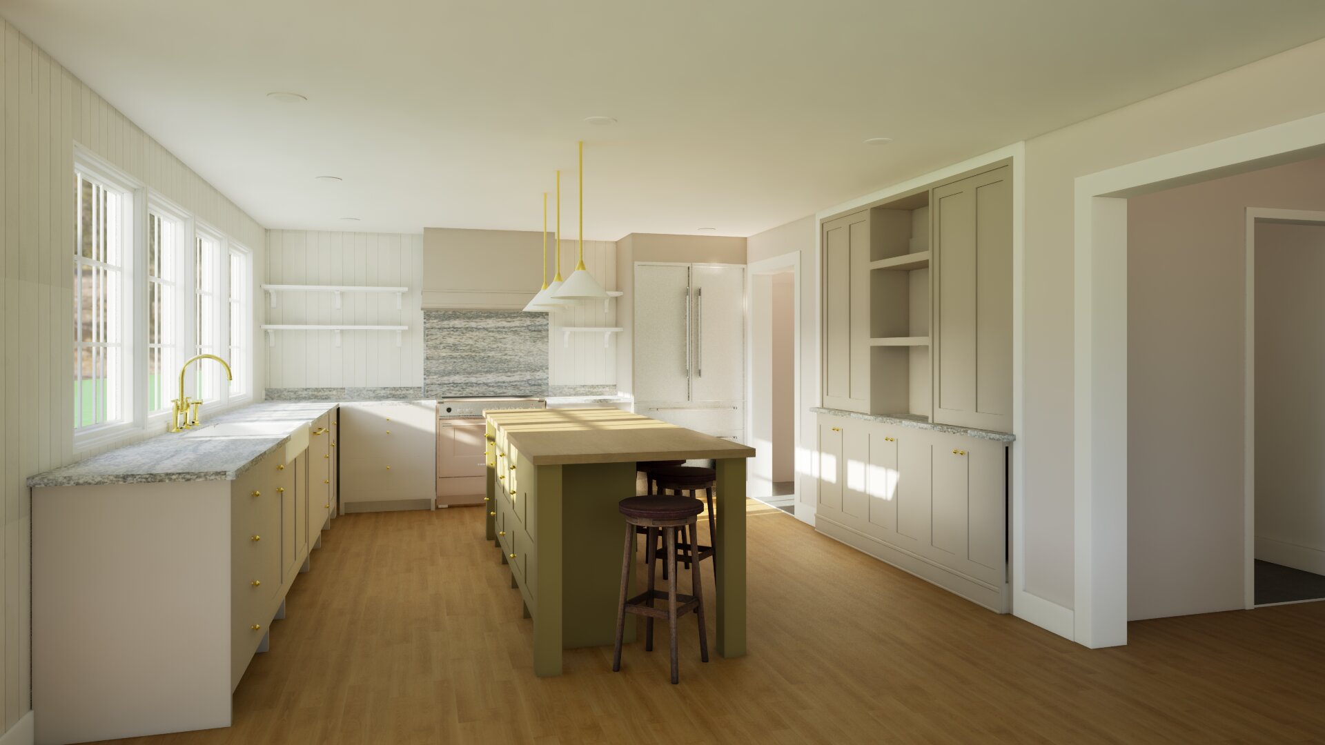 add dishes on the shelves and a few items on the counter