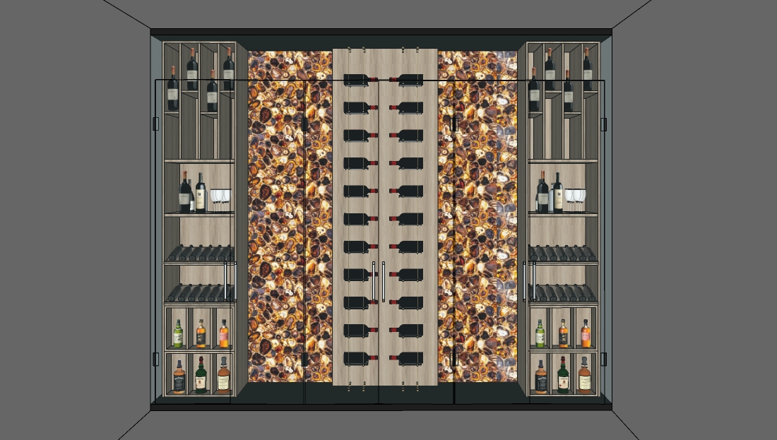 lighting in the interior cabinet and in back of the stone lighting in the ceiling as well marble floors