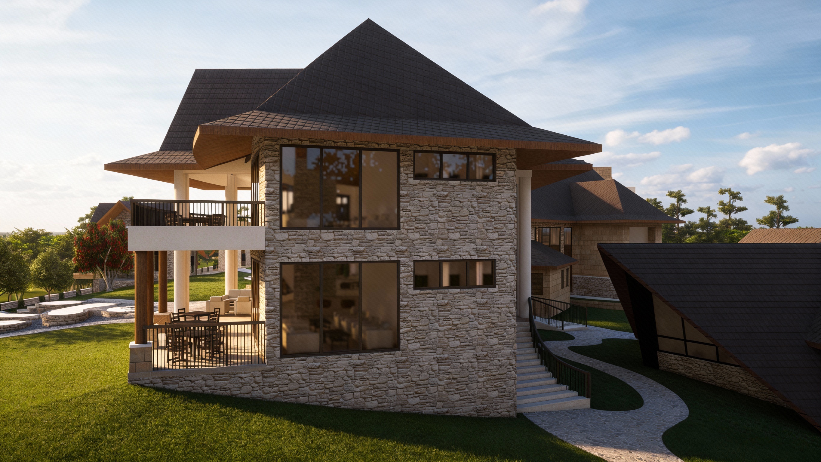 improve the image and add details better furniture and families using the spaces some native plants texas hillcountry ranch landscaping improve brightness inside building
