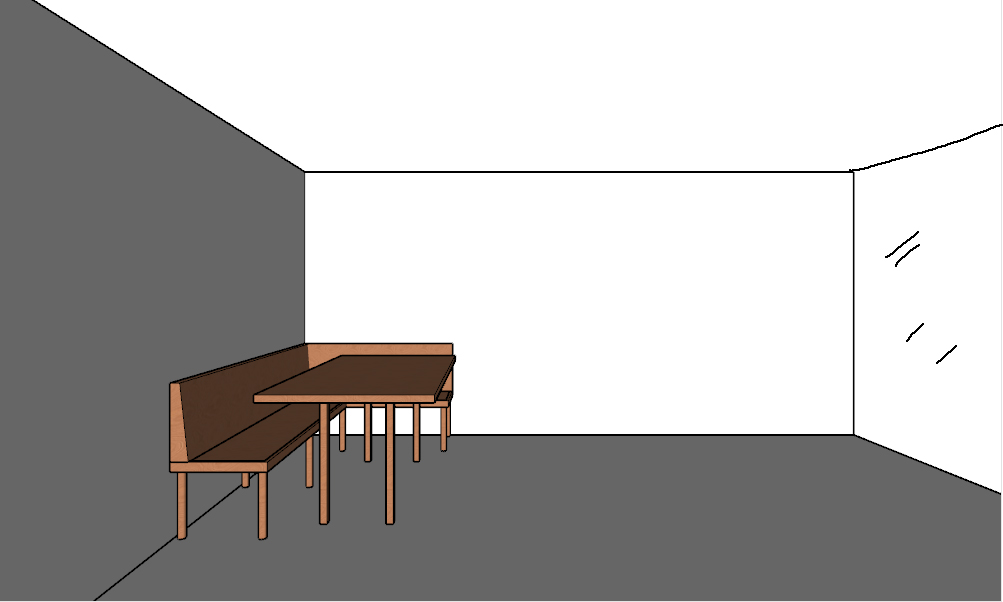 warm scandinavian interior objective create a warm scandinavian style interior render important do not modify the original image proportions camera angle perspective object scale spatial relationships or composition maintain exact geometry flooring light oak wood parquet with small square tiles installed at a 45 degree angle diagonal pattern natural matte finish with subtle grain texture walls elegant cream white paint matte finish soft warm undertone not pure white dining table and bench made of light toned oak wood add high density foam cushions seat and backrest in a soft aqua green color ceiling flat matte white finish on the right side of the image a large floor to ceiling window with a natural wood light oak frame the window opens to a narrow balcony 1 2 meters deep balcony flooring in brick white parapet add plants behind the glass railing outside include trees with soft diffused natural daylight to the right of the table place a two seater sofa upholstered in gray fabric with light oak wooden legs in front of the two seater sofa place a natural cowhide rug and a coffee table with light oak legs and a glass top decorate the walls and overall scene with scandinavian style artwork and framed prints keep decoration minimal balanced and cohesive with scandinavian design principles natural materials clean lines soft textiles neutral palette lighting warm natural daylight entering from the right side soft shadows realistic material textures cozy hygge atmosphere color palette warm neutrals cream whites soft aqua green accents light oak wood tones subtle contrast rendering style photorealistic soft global illumination high material realism no distortion no resizing no proportion changes