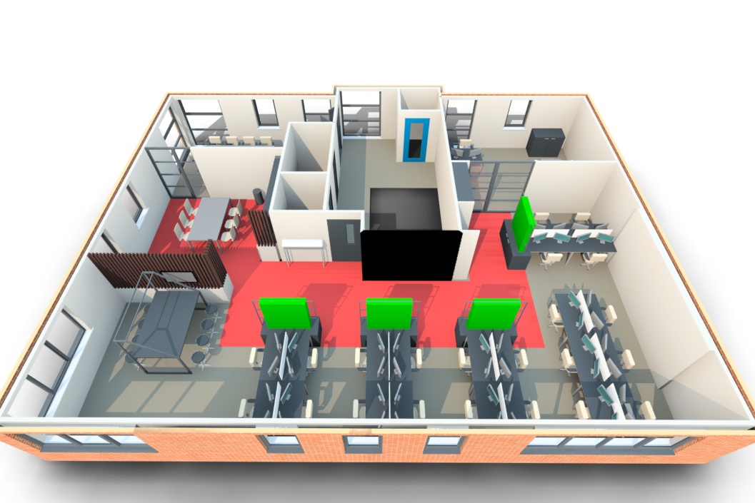 add aw logo to black colored wall add grid planter to green slabs 4 places