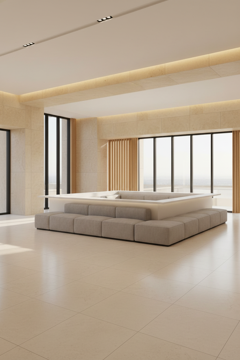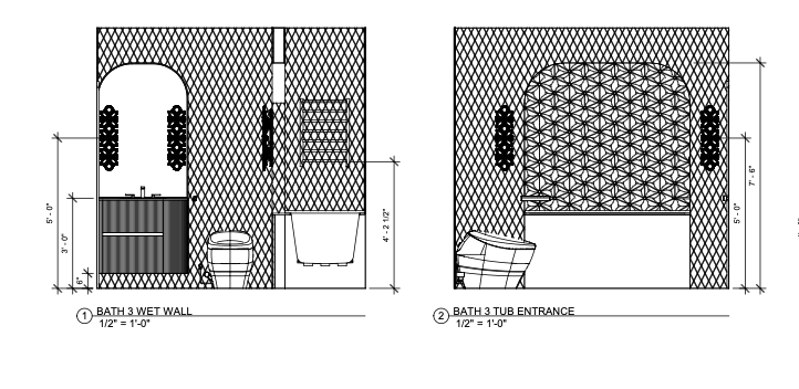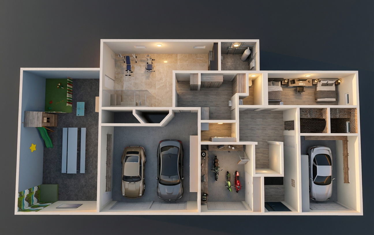 make a rendering of the floor plan based on the plan and elevations with the tiles shown