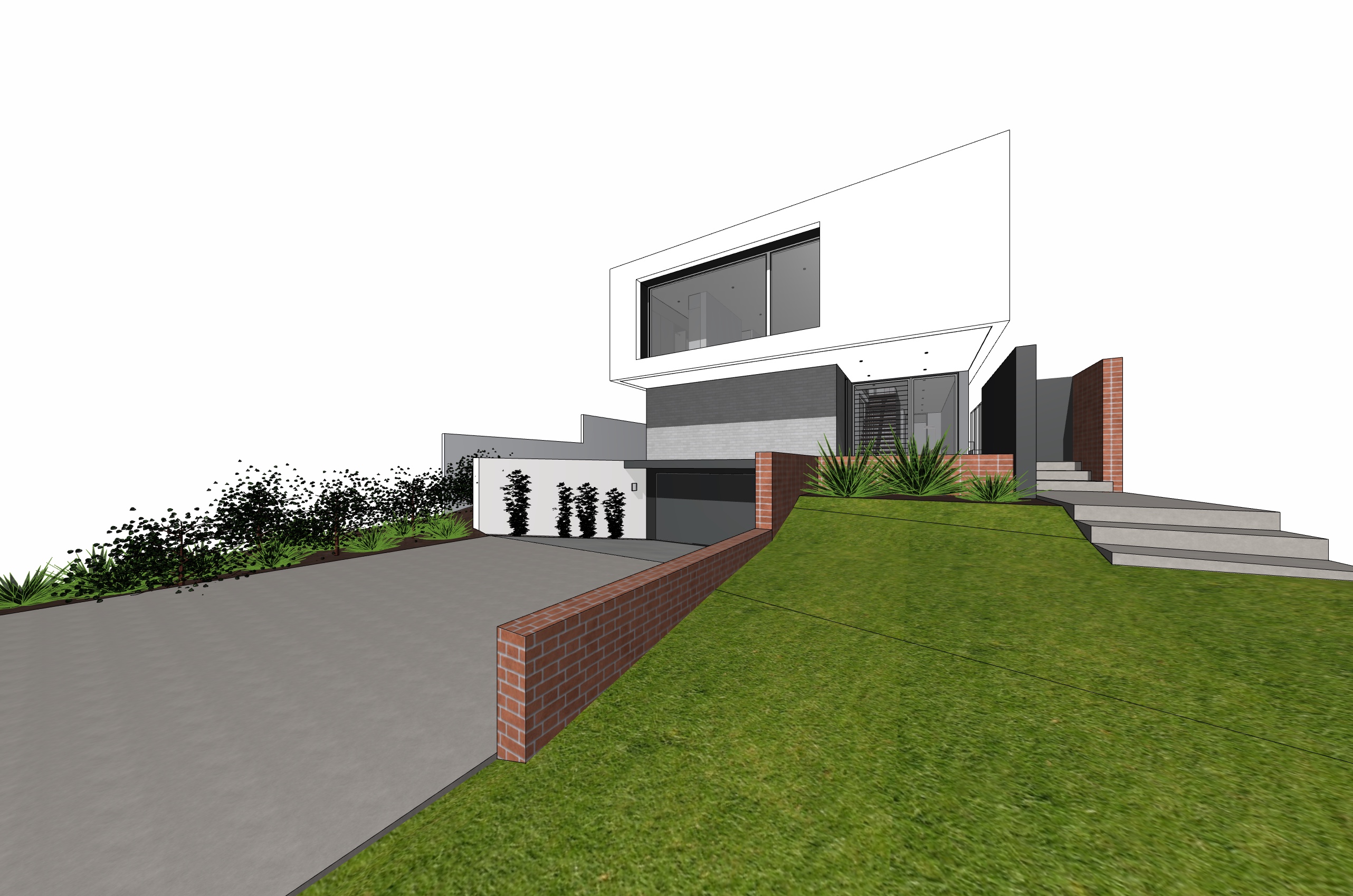 residential houses in background to right of image bushland background to left of image porsche in driveway