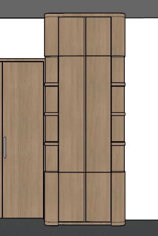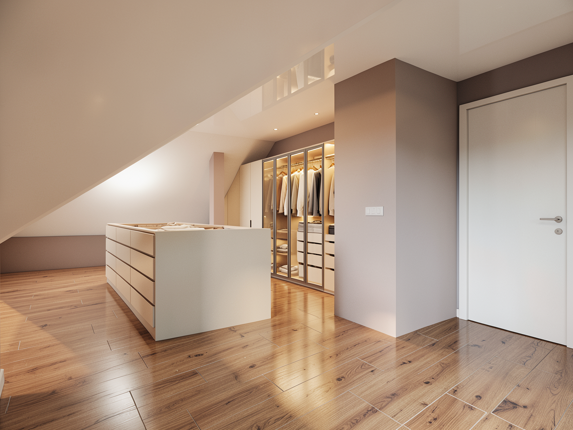 render senyata mungkin dinding krim white plafon putih lantai keramik granit krim agak abu dan tarok pajangan di rak kiri dan kanannya dan lampu indirect warna kayu coklat agak kuning